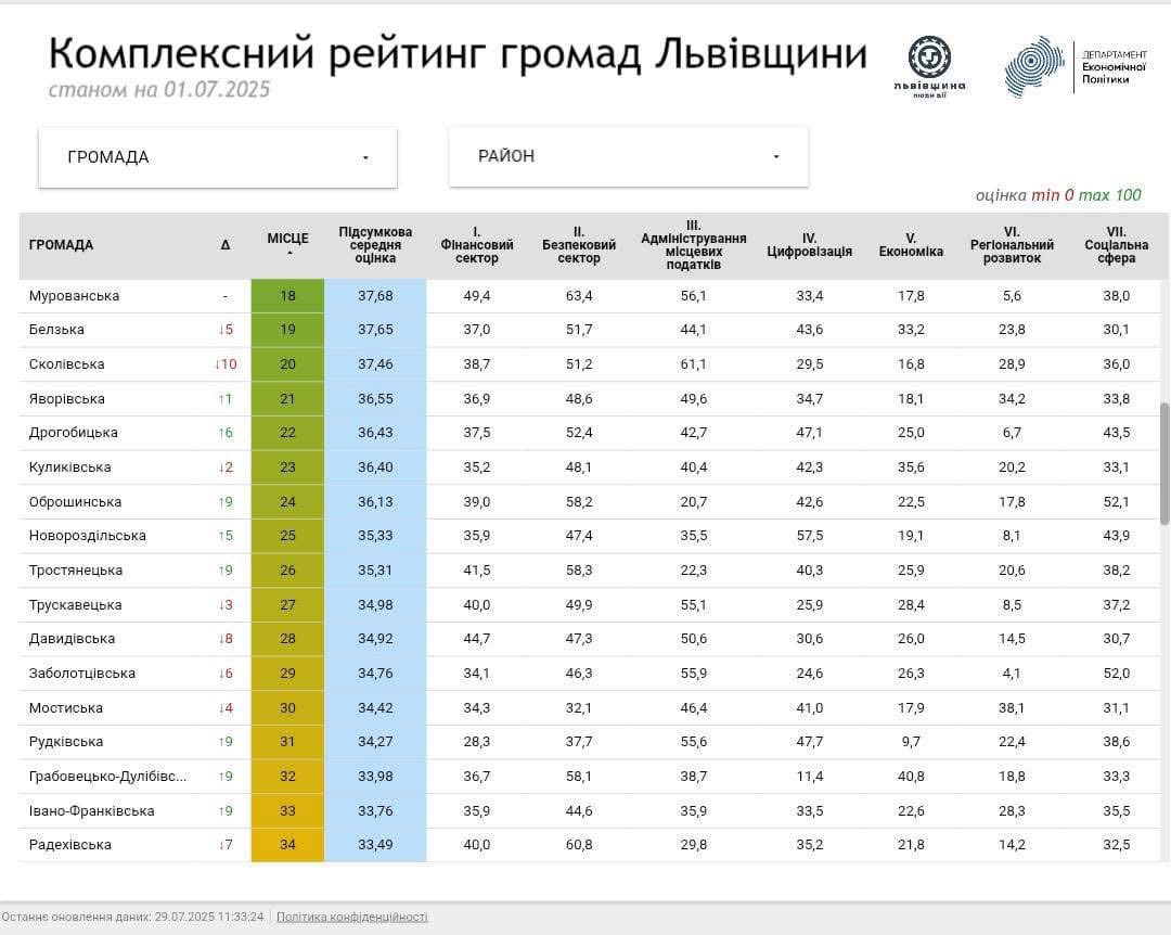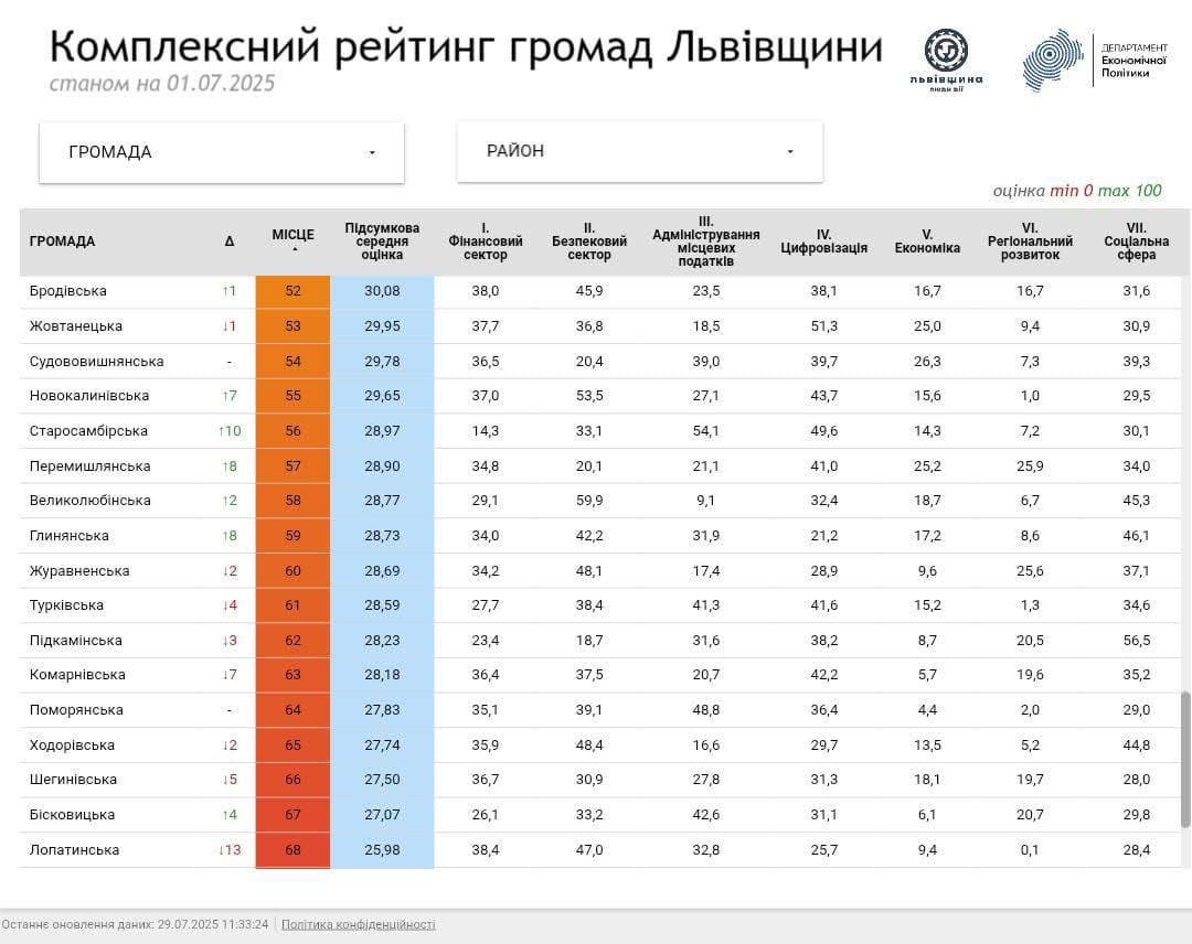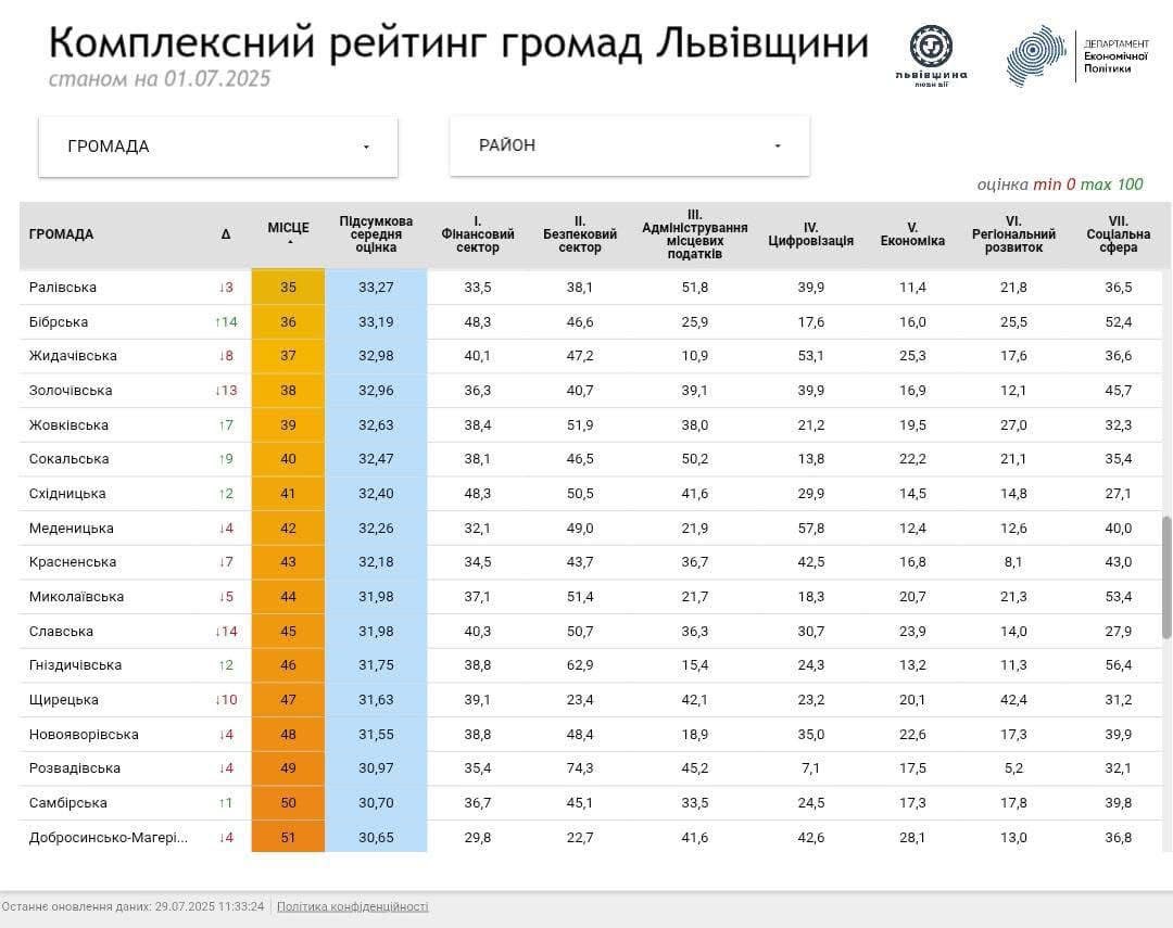 Рейтинг громад Львівщини за перше півріччя 2025 року: детальний аналіз досягнень.