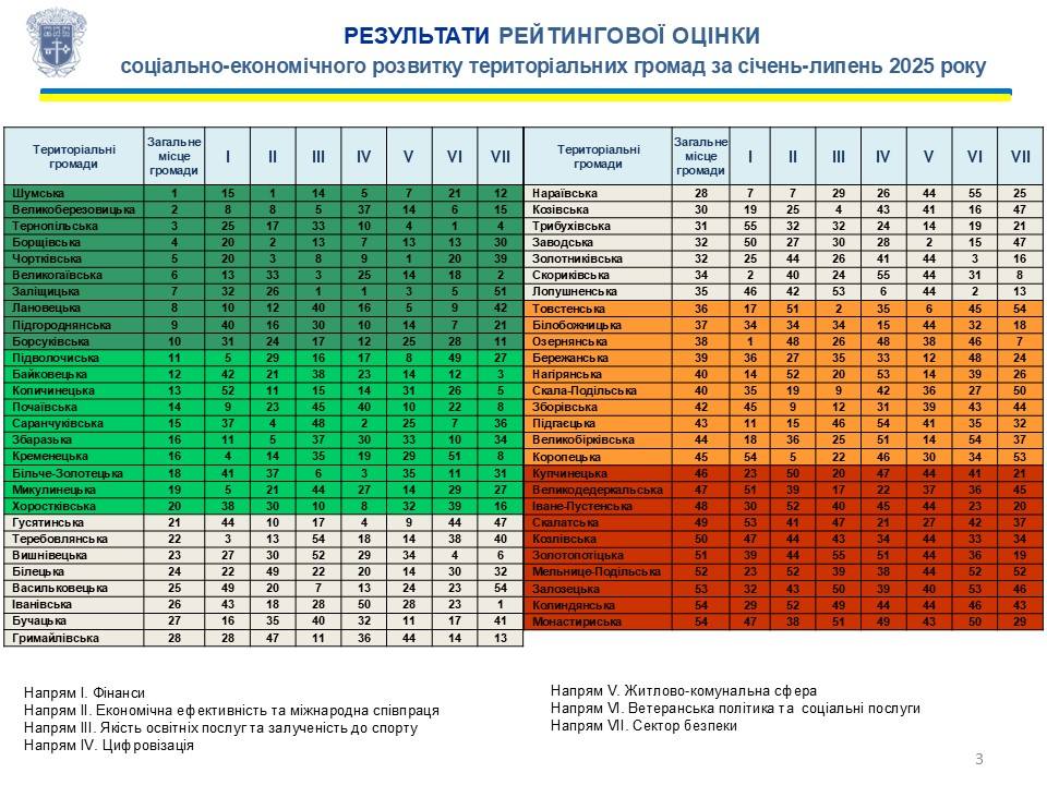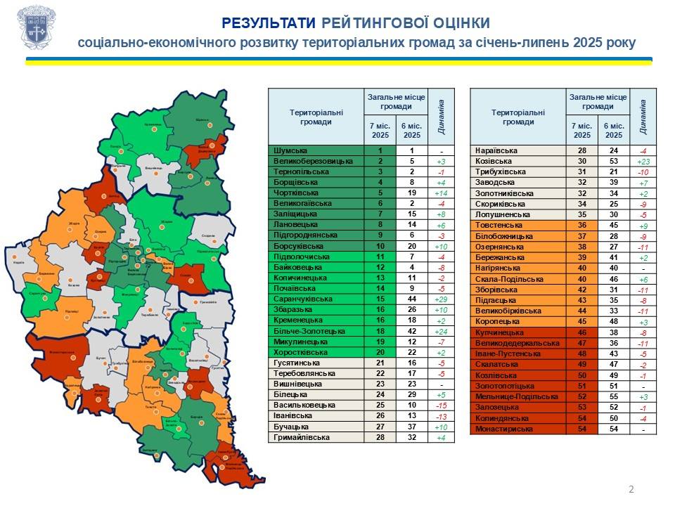 ✅Оновлено рейтинг спроможності громад Тернопільщини за січень-липень 2025 року.