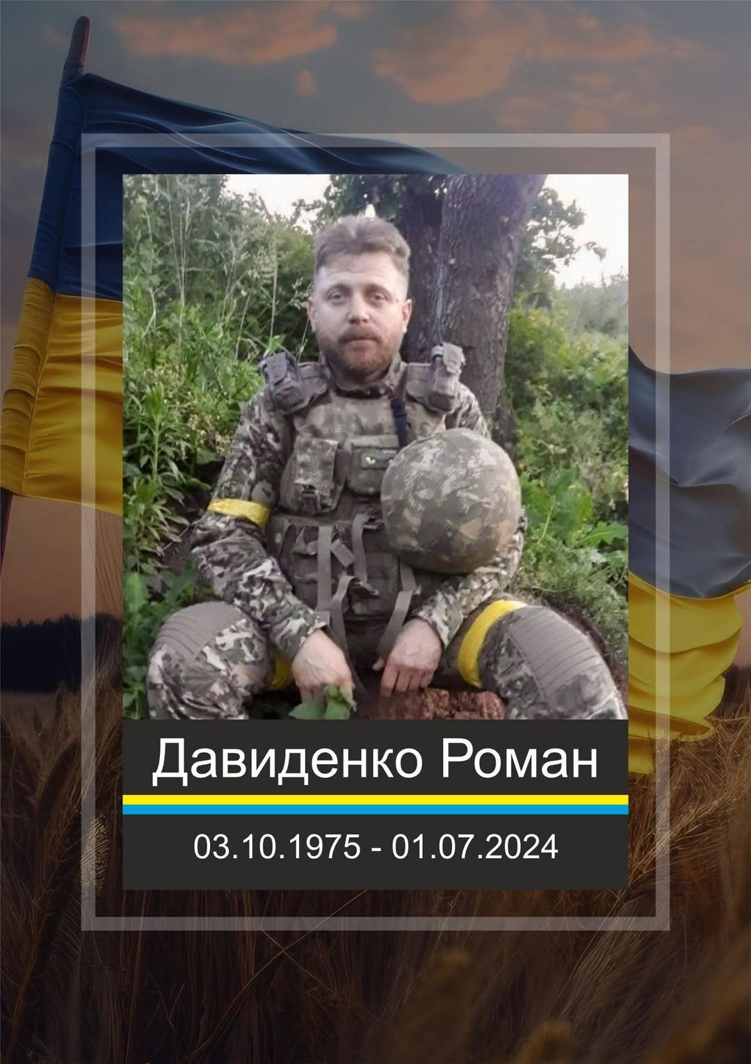 Світла пам’ять і вічна шана Герою! У ці скорботні хвилини висловлюємо найщиріші співчуття рідним та близьким Романа. Ваша втрата – це наш спільний біль. Ми розділяємо ваше горе і пам’ятаємо про те, якою великою жертвою ви виховали справжнього Героя. Його життя, хоч і передчасно обірване, стало прикладом для багатьох, надихаючи на боротьбу та віру в перемогу. Пам’ять про таких героїв, як Роман Давиденко, дає нам сили йти далі, навіть у найважчі чави. Ми ніколи не забудемо тих, хто поклав своє життя за нашу свободу. Дізнатися більше про Романа Давиденка