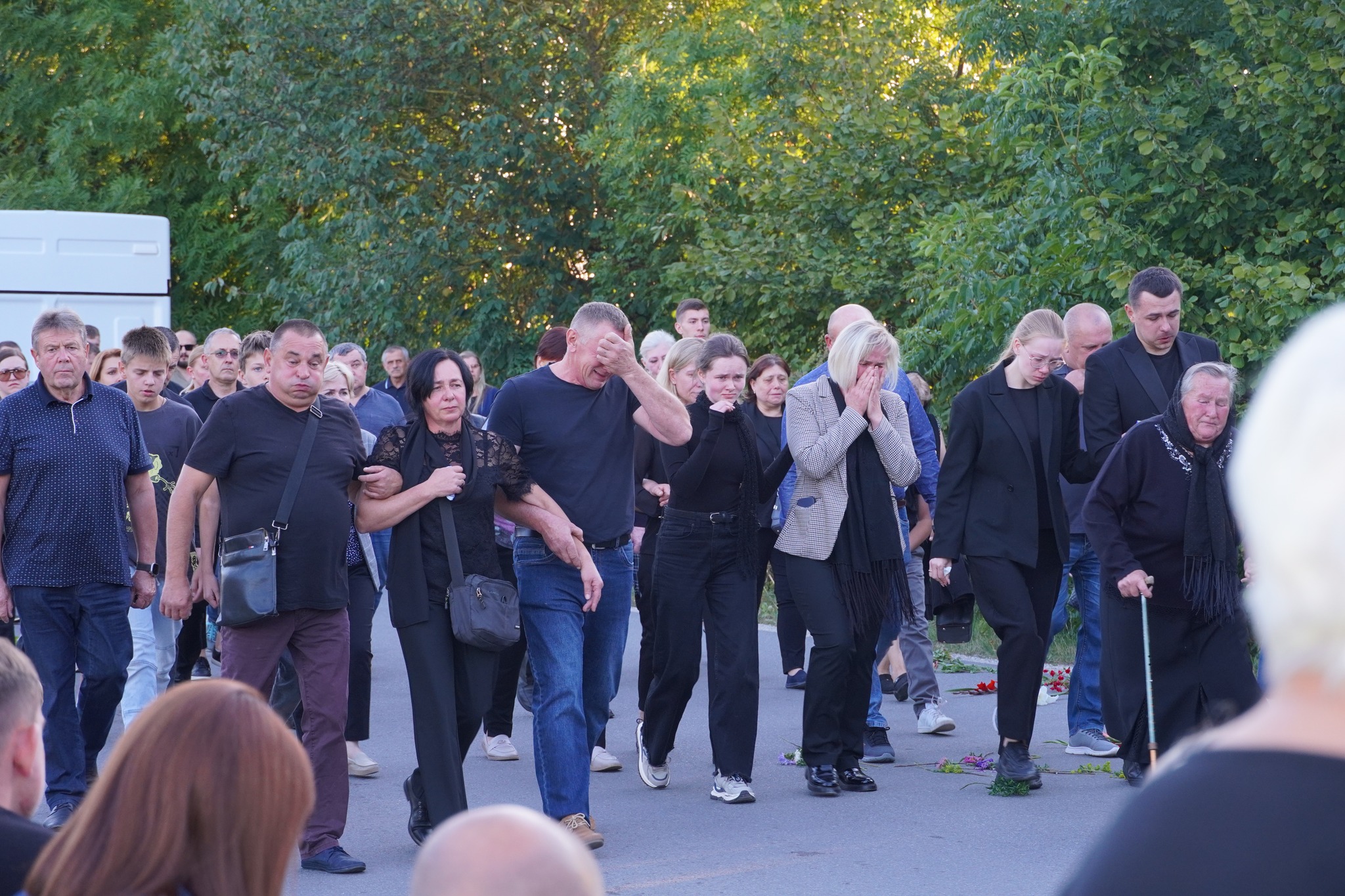 Навіть лагідне сонце цього вечора здавалося сумним, ніби схиляючись разом з усіма у скорботі. Шлях, яким рухалася скорботна хода, був встелений квітами, а повітря наповнювалося сльозами та невимовним болем. У глибокій тиші лунали лише дзвони сердець та приглушені схлипування людей, які не могли стримати емоцій.