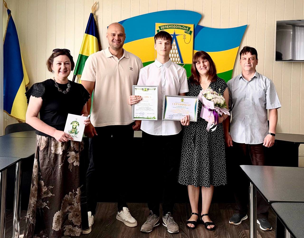 Сьогодні вручив Максиму Цицику, випускнику Зеленодольського ліцею № 1, подяку та сертифікат на премію міського голови за відмінний результат — 200 балів з української мови та 200 балів з історії України на НМТ.