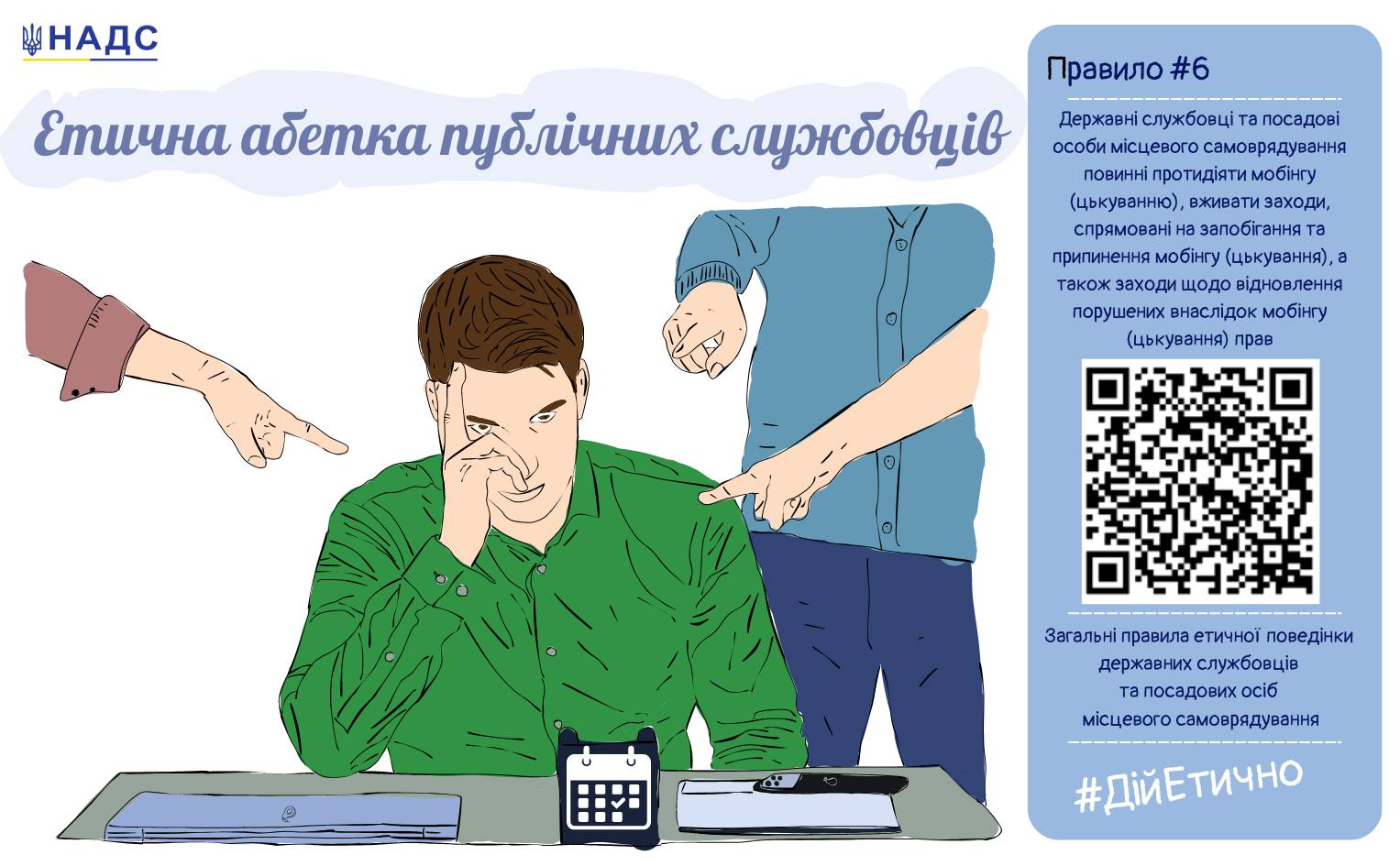 ✅«Державні службовці та посадові особи місцевого самоврядування повинні активно протидіяти мобінгу (цькуванню), невпинно вживати заходів, спрямовані на запобігання та припинення мобінгу (цькування), а також здійснювати необхідні заходи щодо відновлення порушених внаслідок мобінгу (цькування) прав».
