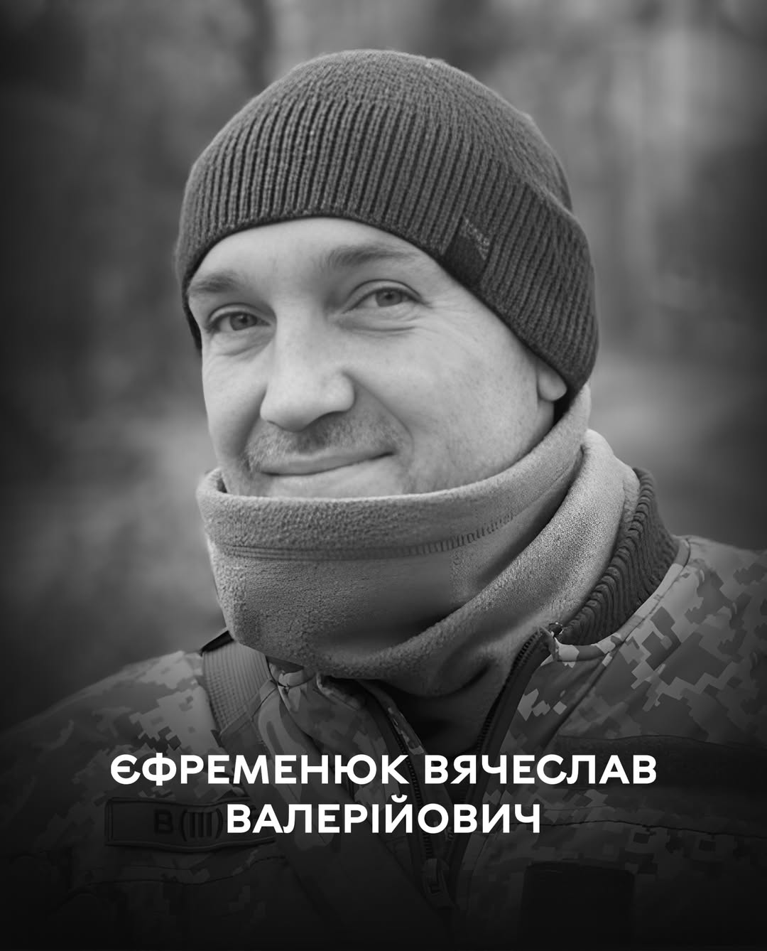 Молодший сержант Вячеслав Єфременюк із перших днів повномасштабної війни захищав Україну у складі 120-ї бригади ТрО. Командир стрілецького відділення, поранений під Ізюмом і Бахмутом, неодноразово повертався на передову. Загинув 17 жовтня 2024 року поблизу міста Гірник Покровського району Донецької області.