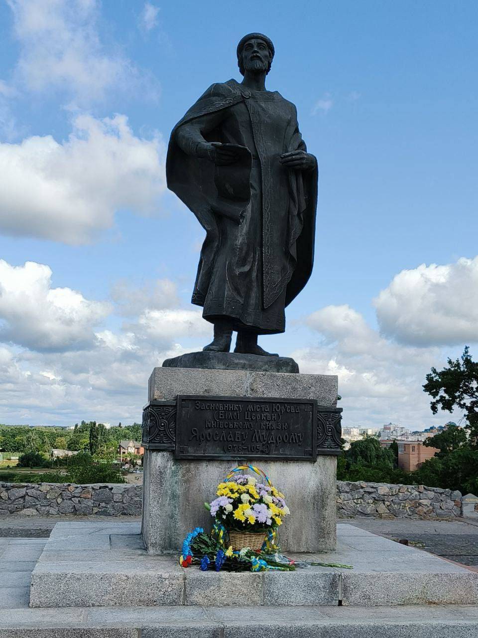 На знак нашої шани великим державотворцям до пам’ятника Великого Київського князя Ярослава Мудрого присутні поклали квіти.