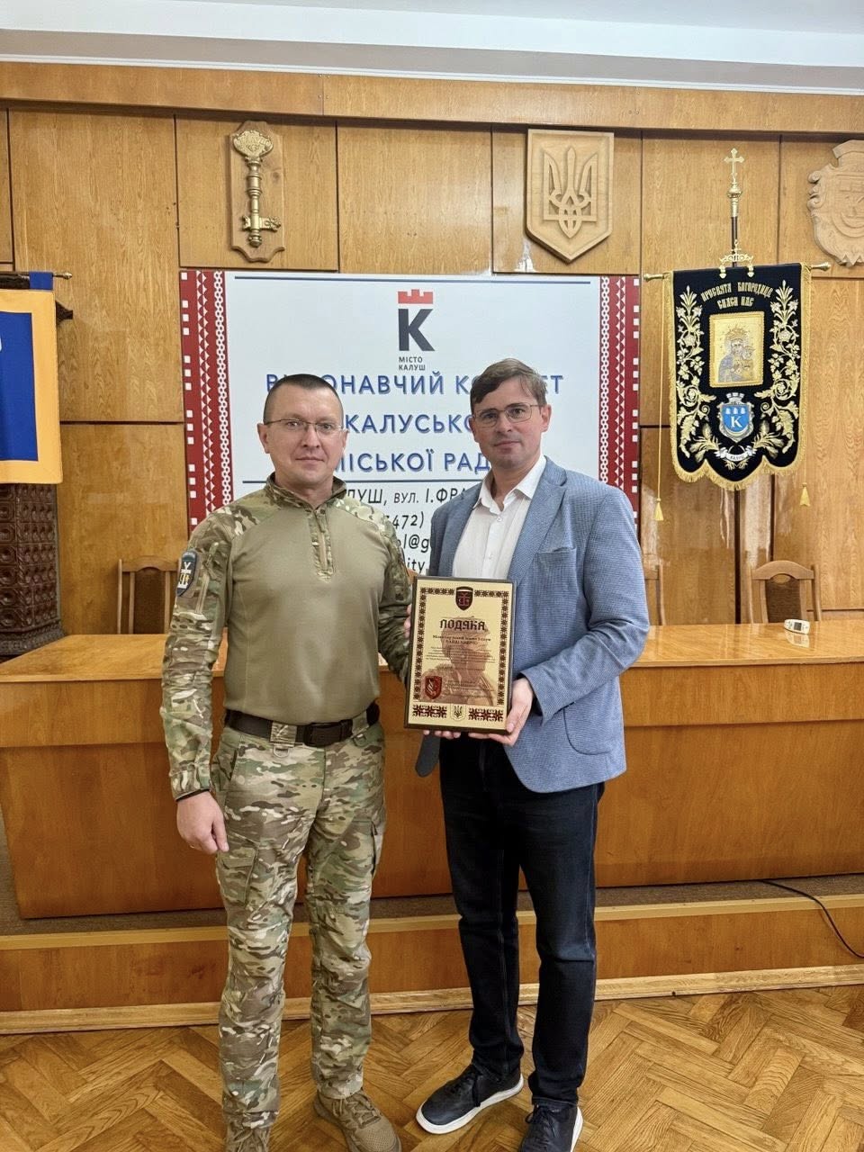 🇺🇦 Сьогодні Калуська громада мала честь прийняти нашого Захисника, воїна Збройних Сил України, який несе нелегку вахту на передовій, захищаючи нашу Батьківщину. Особиста зустріч з таким мужнім чоловіком стала великою честю та нагодою для щирого спілкування. Особливо зворушливим моментом стало отримання подяки від нього – це не просто слова, а вагомий знак глибокої єдності та взаємної підтримки між тими, хто боронить нас на фронті, і тими, хто забезпечує надійний тил.