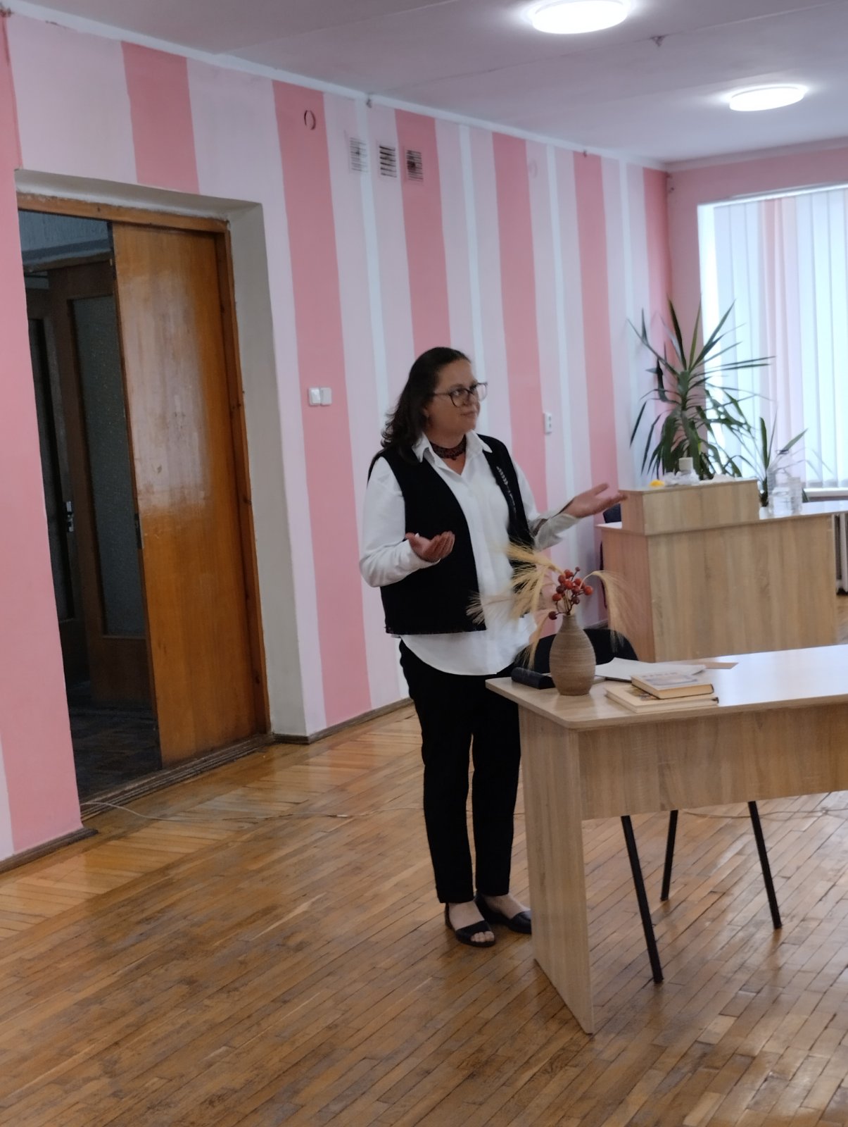 Директор бібліотеки, Любов Павлівна Янклевич, радо провела для юних відвідувачів пізнавальну екскурсію, розкривши багатство фондів та можливості сучасної бібліотеки. Особливу увагу викликала інтерактивна доповідь креативної Христини Давидчак, яка зосередилася на “Особливостях діалектичних наріч української мови Львівщини та Сумщини: порівняльний аспект”. Ця тема дозволила молодим людям глибше зануритися у мовне розмаїття України та відчути культурну спорідненість, незважаючи на географічну відстань. Гості мали унікальну нагоду ознайомитися з бойківською культурою, автентичною говіркою, давніми звичаями та традиціями, що збереглися на Львівщині.