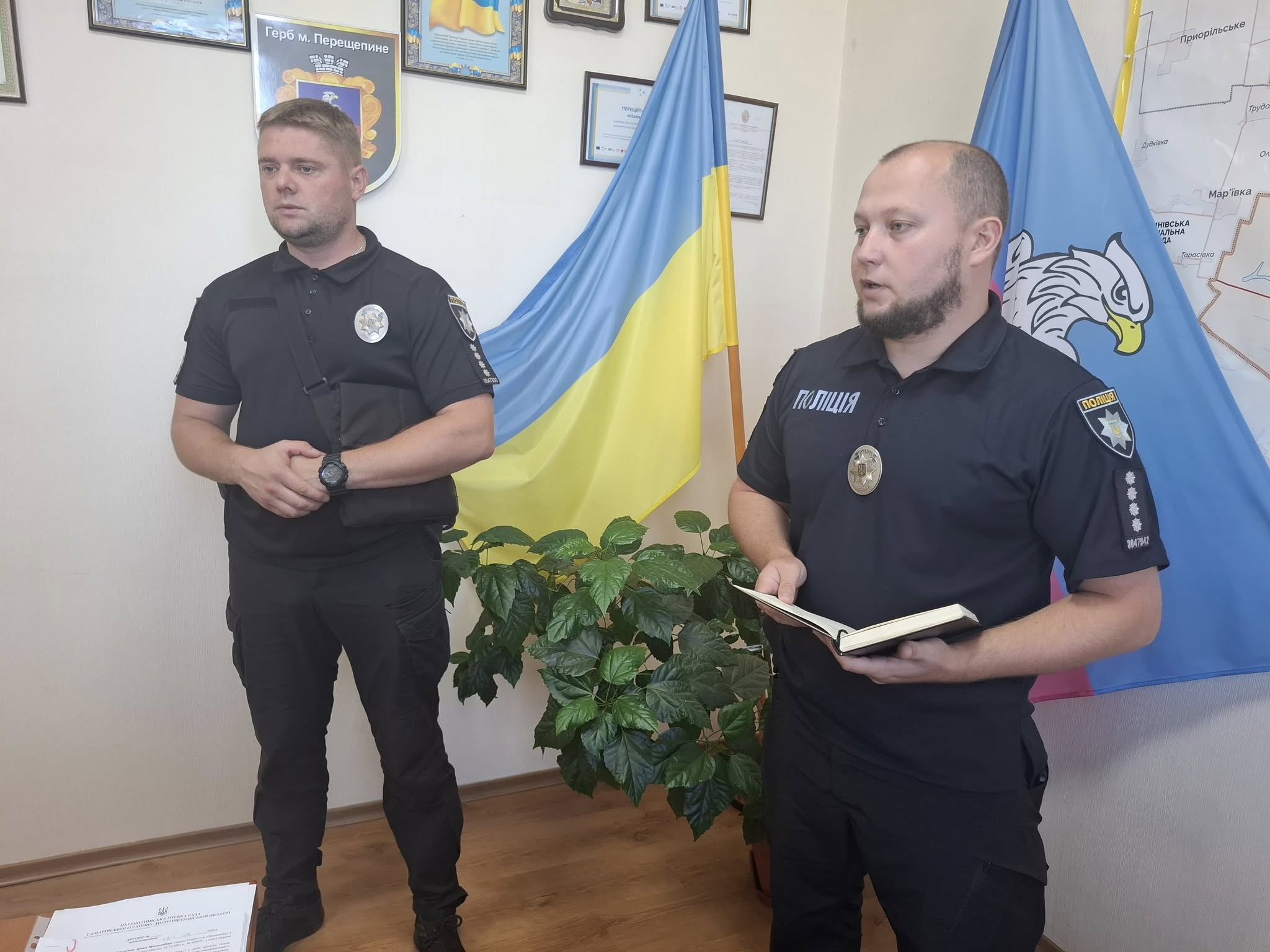 Сьогодні в Перещепинській міській раді відбулося важливе засідання, де було заслухано детальний звіт про діяльність поліцейських офіцерів Перещепинської громади за перше півріччя 2025 року. Своїми досягненнями та результатами роботи поділилися офіцери Сергій Павлович Бодя та Юрій Андрійович Писиголовець. Вони представили комплексну інформацію щодо забезпечення правопорядку та безпеки мешканців громади, окресливши основні напрямки своєї діяльності. Особливу увагу було приділено реалізованим заходам, спрямованим на запобігання правопорушенням та оперативне реагування на звернення громадян. Поліцейські офіцери громади відзначили важливість тісної співпраці з місцевою владою та населенням для досягнення максимальної ефективності у своїй роботі. Звіт охопив аналіз статистичних даних, викликів та результатів роботи за звітний період, що дозволило оцінити поточний стан безпеки та визначити пріоритетні завдання на майбутнє. Ми вдячні Сергію Павловичу Боді та Юрію Андрійовичу Писиголовцю за їхню самовіддану працю та вагомий внесок у забезпечення стабільного правопорядку на ввірених їм територіях. Їхня робота є запорукою спокою та безпеки кожного мешканця Перещепинської громади.