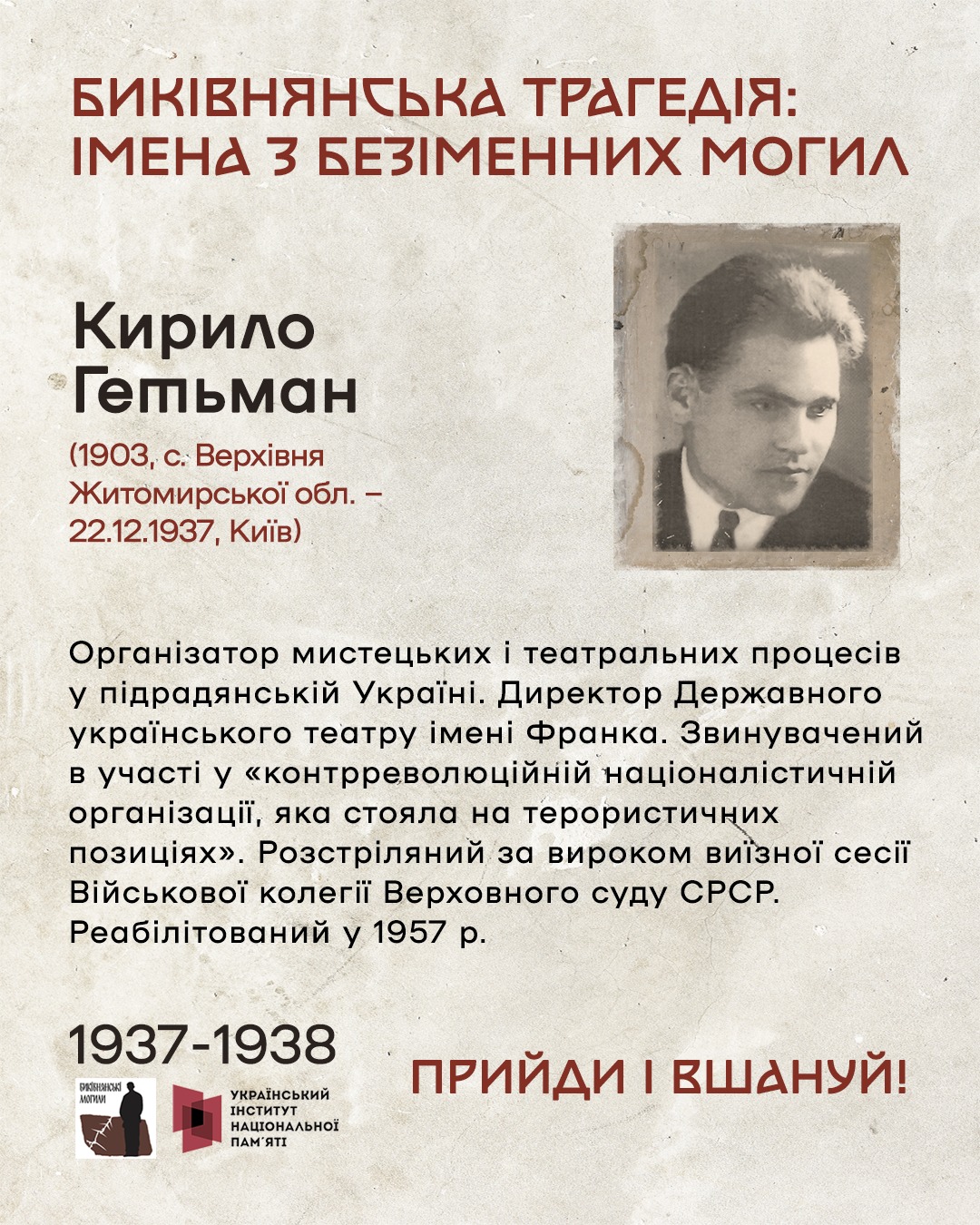 Разом із Меморіальним заповідником “Биківнянські могили” ми підготували матеріал про тих, хто став жертвою комуністичних репресій під час Великого терору. Серед них були люди різних професій, релігій, національностей та соціального статусу. Усі вони стали жертвами сфабрикованих звинувачень та позасудових розправ. День пам’яті жертв політичних репресій змушує нас згадати ці страшні події.