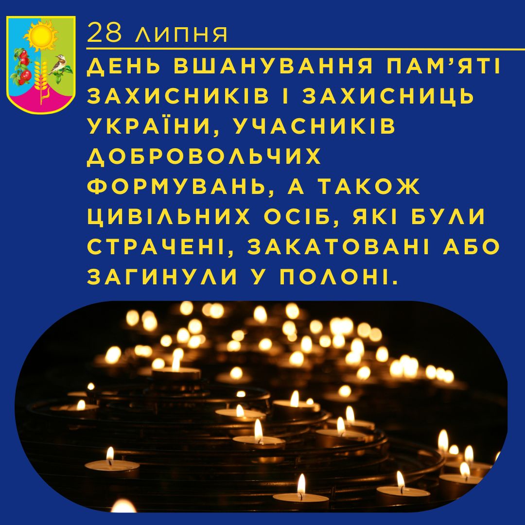 🕯 День скорботи та пам’яті Захисників і Захисниць України: Вшанування полеглих героїв. Сьогодні ми відзначаємо День скорботи та вшанування пам’яті всіх, хто боровся за свободу та незалежність України. Цей день присвячений Захисникам і Захисницям, учасникам добровольчих формувань, а також мирним громадянам, які стали жертвами жорстокості, були закатовані або загинули в полоні. Це не просто дата в календарі, це нагадування про глибокий біль, який переживає наша нація. Це пам’ять про тих, кого ми втратили, про тих, кого не встигли обійняти востаннє. Це свідчення злочинів, які не мають терміну давності, і про які Україна зобов’язана говорити всьому світу, щоб подібне ніколи не повторилося. Ми пам’ятаємо кожного, хто віддав життя за нашу землю. О 9:00 ранку, зупиніться на мить. Вшануйте пам’ять героїв хвилиною мовчання. Згадайте їхні подвиги, їхню мужність, їхню самовідданість. Вічна слава полеглим. Слава Героям. Слава Україні.