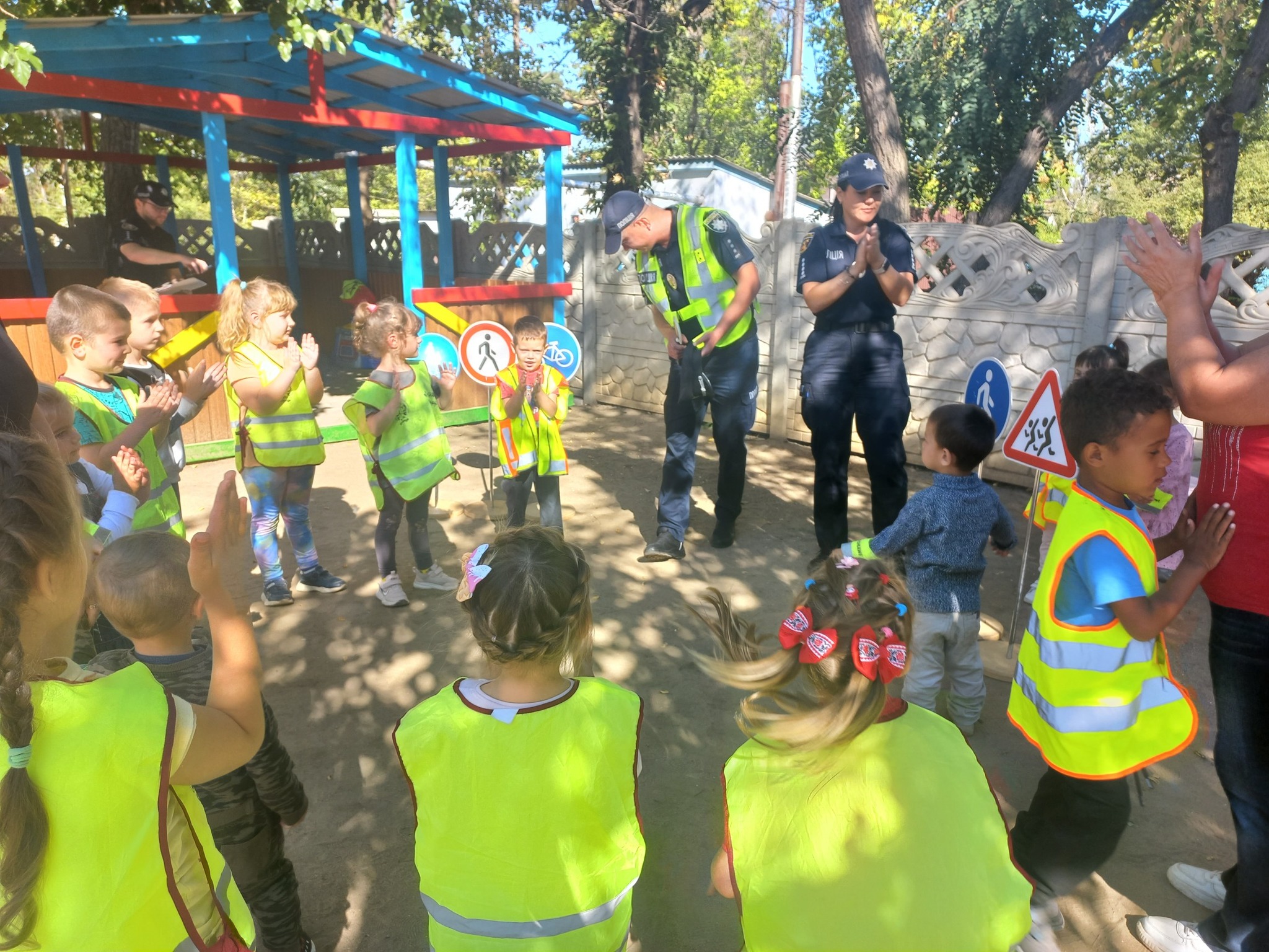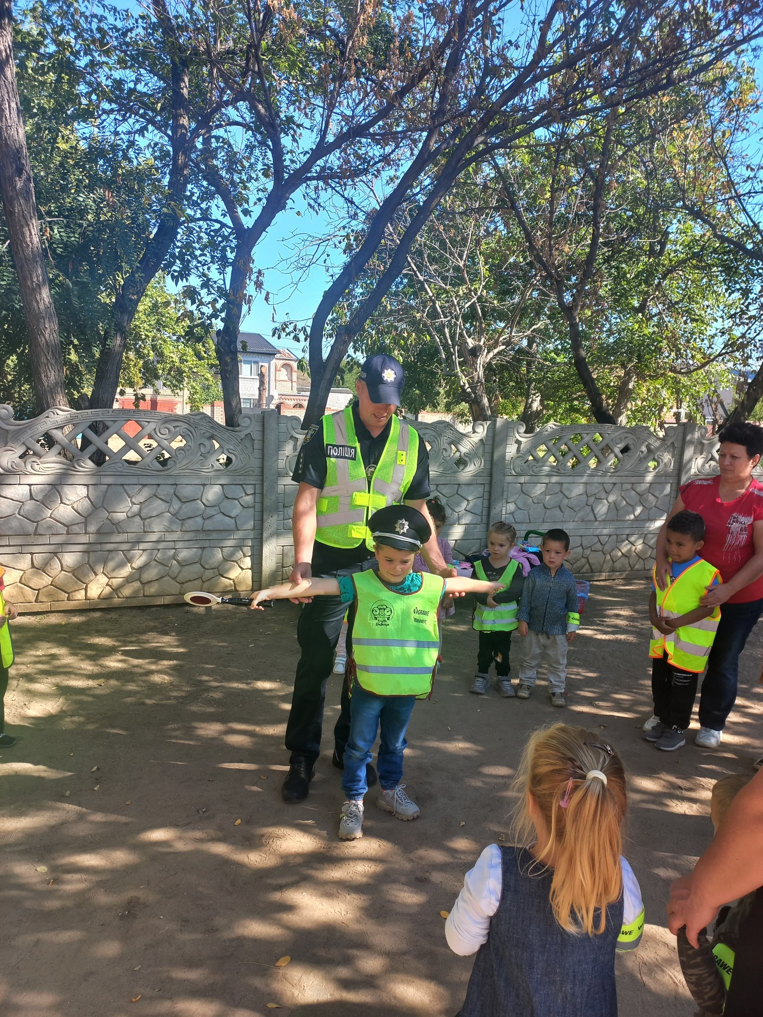 Крім того, діти дізналися про правила поводження на вулиці, як поводитися біля проїжджої частини, переходити дорогу та бути уважними до інших учасників руху. Зустріч включала інтерактивні елементи, завдяки яким діти могли ставити запитання та отримувати вичерпні відповіді. Особливо захопливим для малечі стало знайомство з регулювальником дорожнього руху, який продемонстрував основні сигнали та їхнє значення.