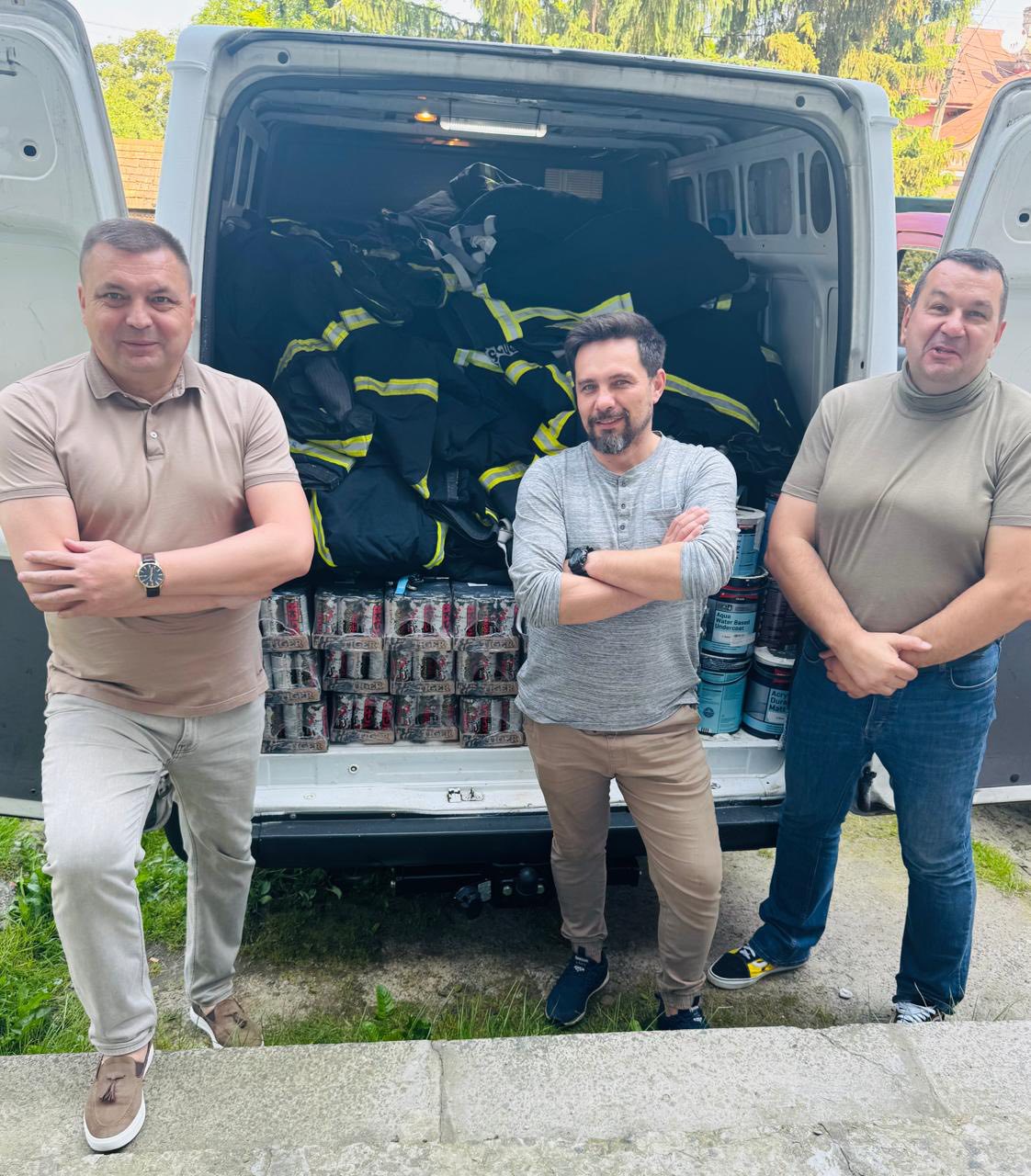 Цього разу вони приїхали не з порожніми руками, а з цінним вантажем: передали комплекти пожежного одягу, а саме куртки та штани, які найближчим часом поповнять ресурси добровільних пожежних команд Мостищини. Частину цього екіпірування буде передано і партнерським громадам по всій Україні. Це важливий внесок у нашу спільну безпеку.