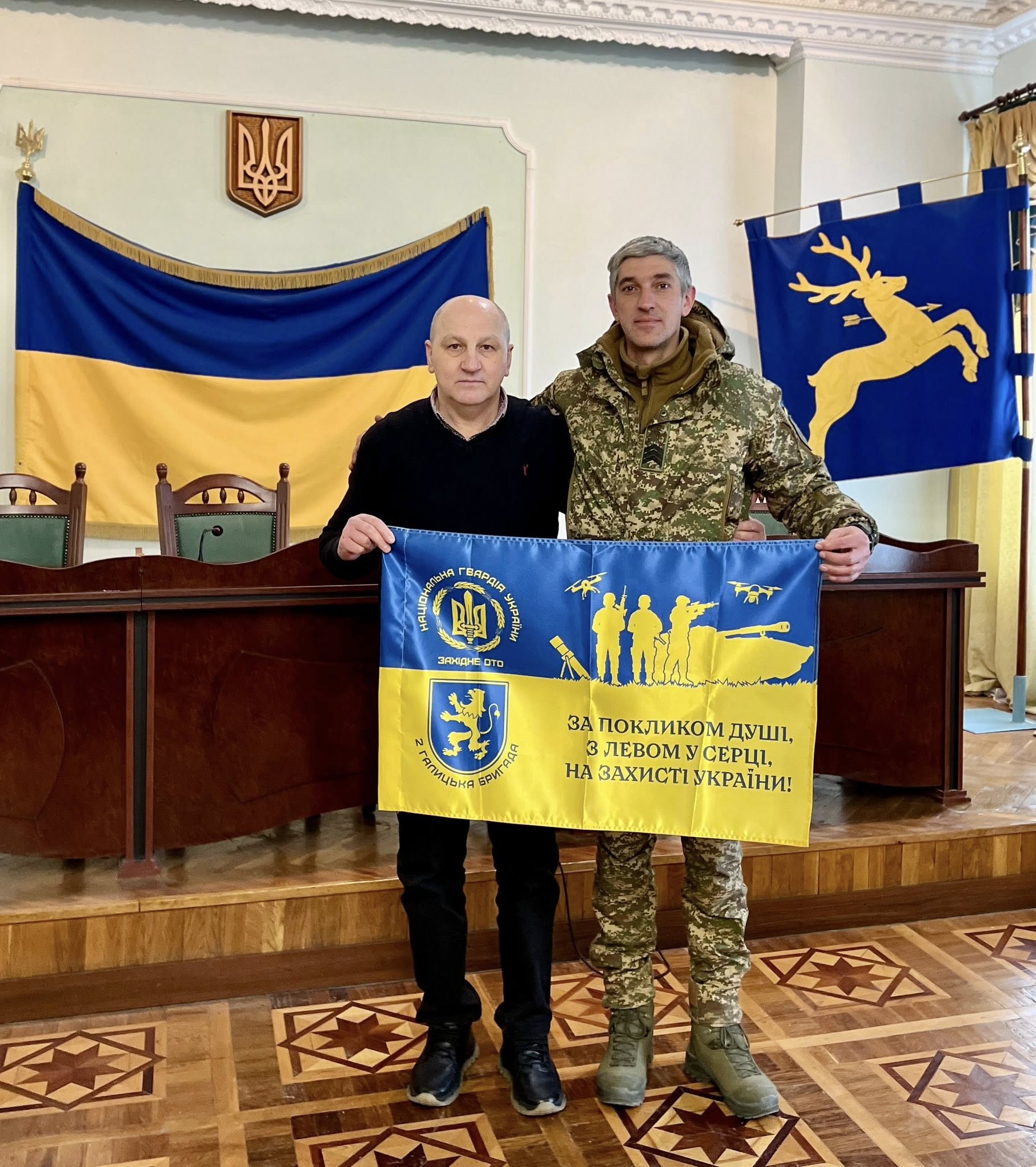 Сьогодні відбулася надзвичайно важлива робоча зустріч з представниками 13-ої бригади оперативного призначення НГУ «Хартія» та 2-ої окремої Галицької бригади НГУ. Під час діалогу ми детально обговорили потенційні шляхи співпраці між нашою громадою та цими бойовими підрозділами. Особлива увага була приділена тому, чим саме громада може бути максимально корисною для наших невтомних захисників. Найважливішим результатом зустрічі стало чітке розуміння актуальних потреб наших воїнів. Сьогодні ми маємо особливу, невідкладну відповідальність: глибоко знати, розуміти та активно допомагати нашим героям там, де це найбільше потрібно. Ми прагнемо бути надійним тилом для тих, хто стоїть на варті миру та безпеки України. Розуміння потреб військових – це перший крок до ефективної підтримки. Ми готові долучатися до вирішення завдань, які допоможуть нашим захисникам виконувати їхню місію з більшою ефективністю та впевненістю. Ця зустріч стала черговим свідченням міцності зв’язку між суспільством і армією, що є запорукою нашої майбутньої перемоги. Наприкінці зустрічі, як знак глибокої довіри та взаємної поваги, військові урочисто подарували прапори з символікою своїх бойових бригад. Це цінний подарунок, що символізує єдність та спільну мету. Ми безмежно вдячні кожному воїну за його нелегку, але таку важливу службу, за незламну силу духу та за те, що ви щодня тримаєте нашу рідну Україну. Ваша відданість і мужність надихають увесь народ. Разом ми обов’язково вистоїмо перед будь-якими випробуваннями. Ця спільна боротьба об’єднує нас і робить сильнішими. Дякуємо за вашу службу!