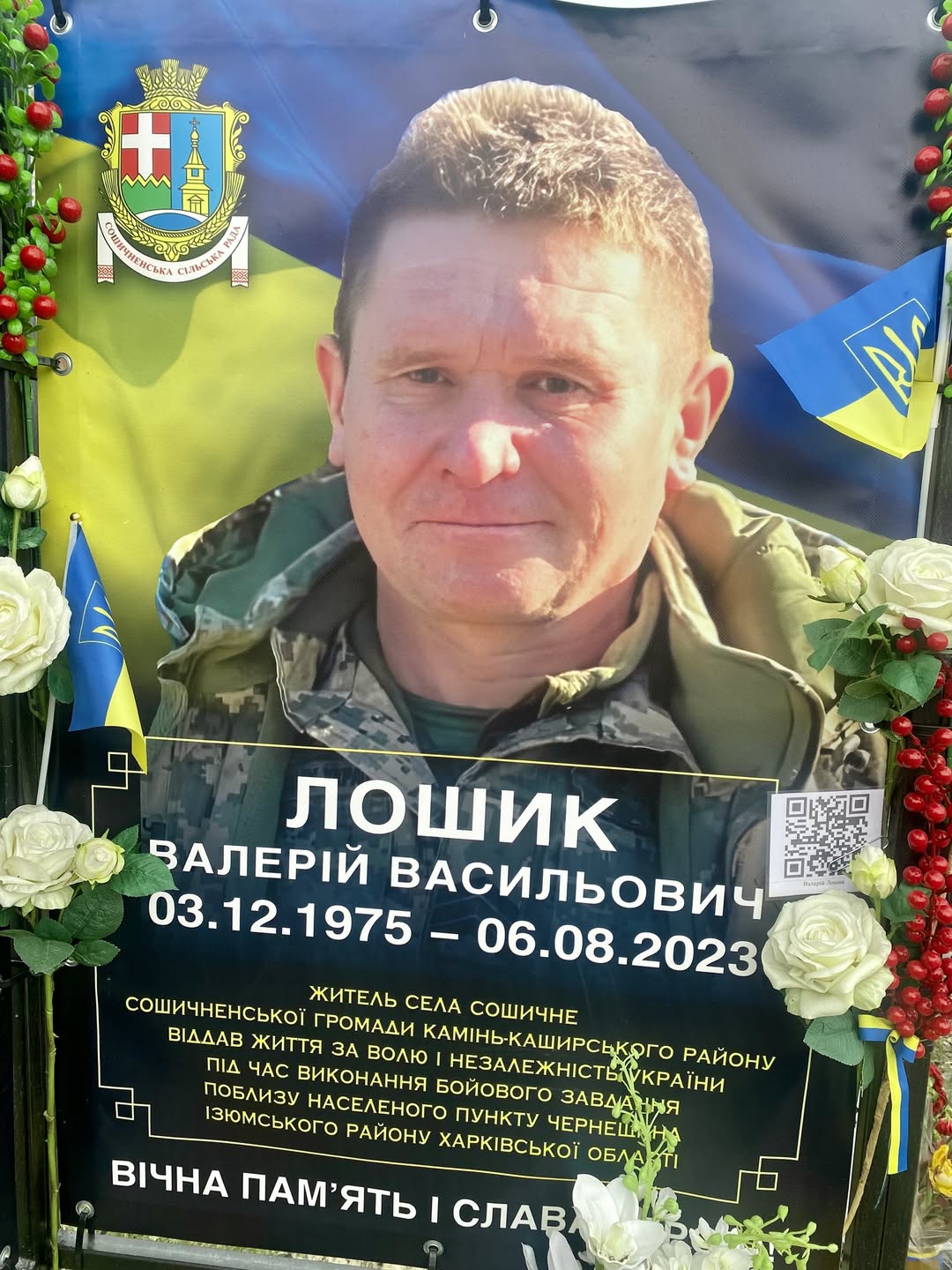 🥀Сьогодні минає рівно два роки від дня загибелі нашого Захисника, воїна Збройних Сил України, Лошика Валерія Васильовича – жителя села Сошичне. Він віддав своє життя за свободу, незалежність і майбутнє нашої країни під час виконання бойового завдання поблизу населеного пункту Чернещина Ізюмського району Харківської області.🇺🇦