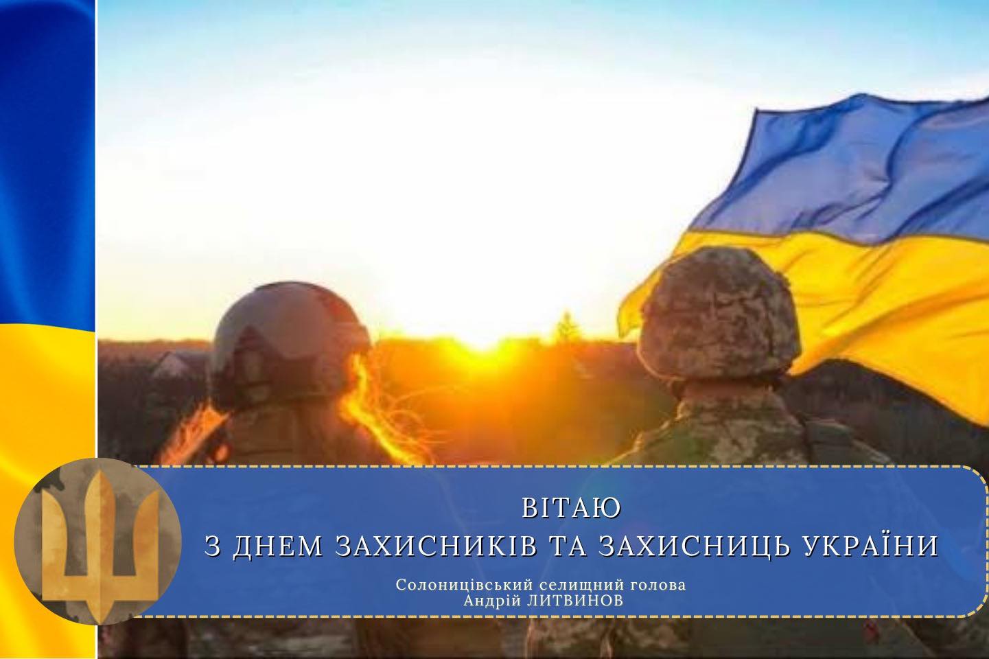Сьогодні Україна відзначає особливе свято – День захисників і захисниць України. Це не просто дата в календарі, а день вшанування всіх, хто стоїть на варті нашої незалежності та суверенітету. Це свято нескорених, адже, попри всі випробування, дух українського народу залишається непохитним. Ми відзначаємо тих, для кого поняття честі, гідності, сили, витримки та відповідальності є не порожніми словами, а життєвим кредо. Це ті, хто готовий у будь-який момент стати на захист своєї родини, свого народу та своєї Батьківщини.