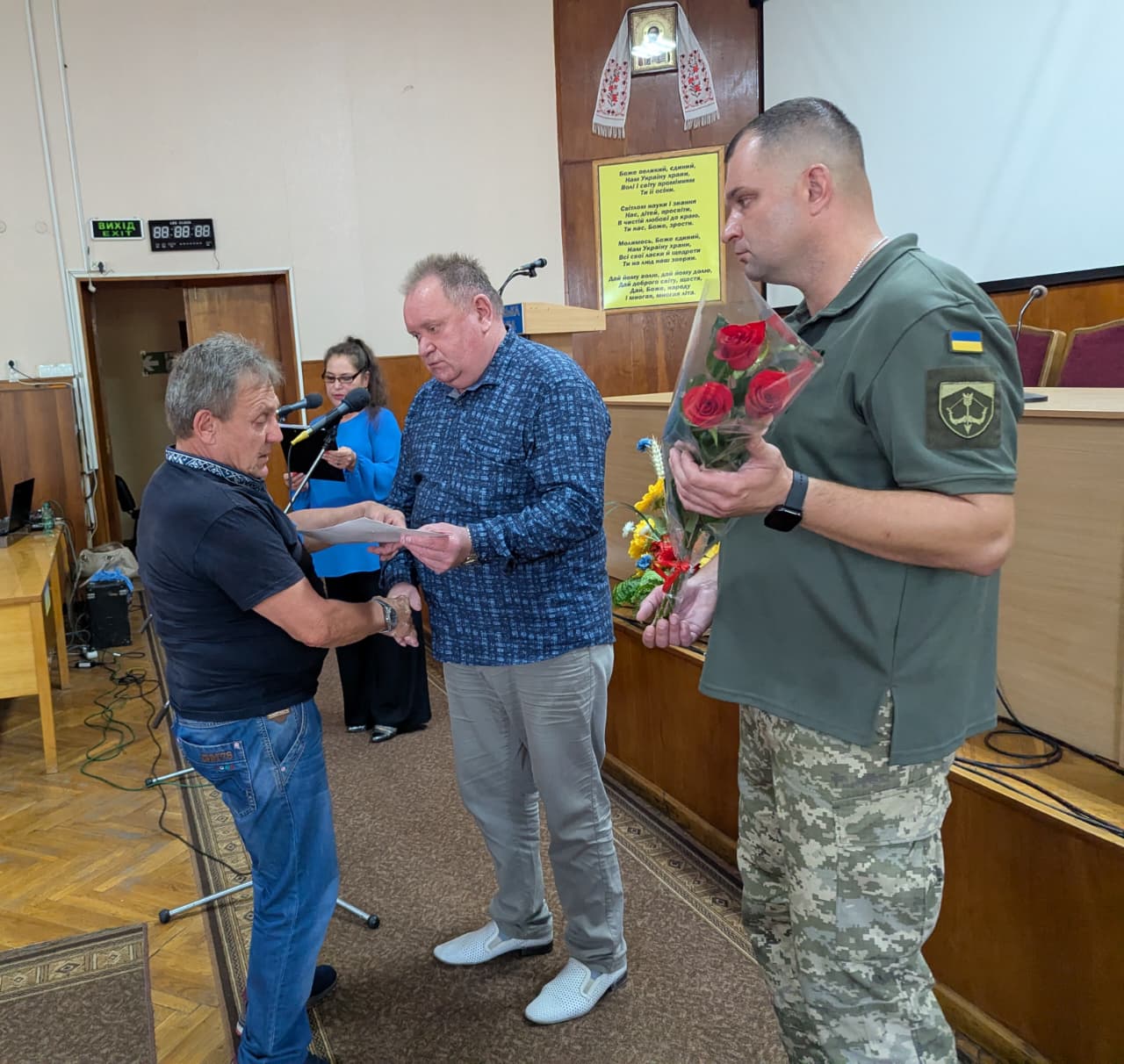 🇺🇦Сьогодні начальник Звенигородської районної військової адміністрації Юрій Піковський спільно з майором районного центру комплектування та соціальної підтримки Володимиром Жуганом вручили державні нагороди сім’ям загиблих військовослужбовців, пораненим воїнам та їхнім родинам.
