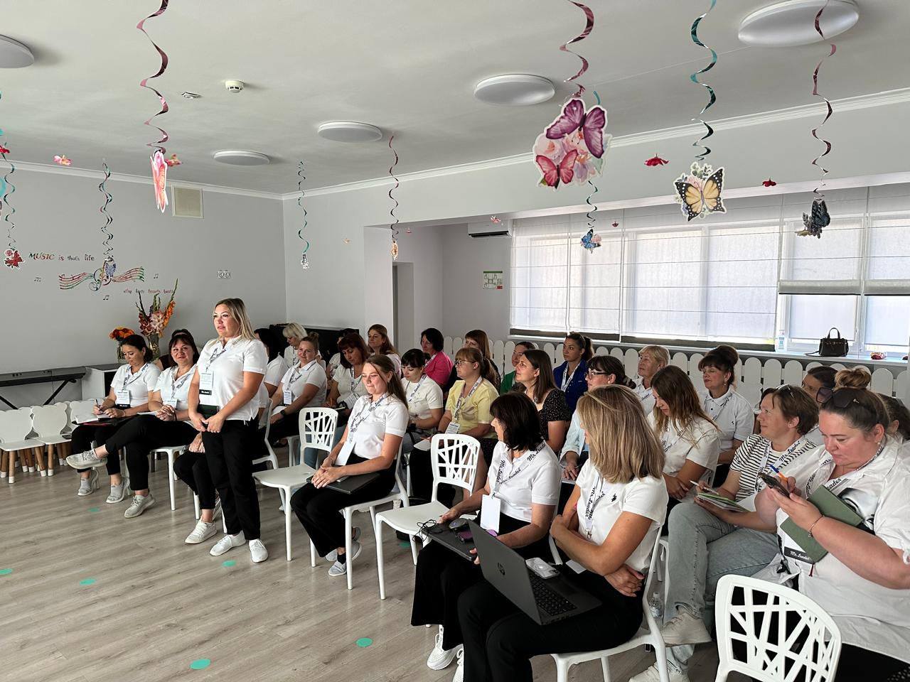 Модераторами теоретичної та практичної частини тренінгу виступили Яна ПРОХОРЕНКО – директорка ЗДО Mr. Lider та Катерина КОВАЛЬЧУК – керівниця Центру підвищення кваліфікації та розвитку професійної майстерності Українського інституту дитинства.