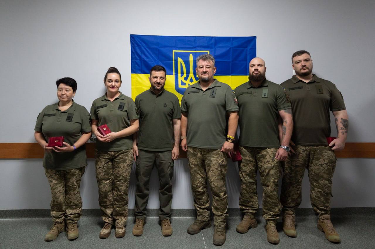 Також Глава держави подякував бойовим медикам, які допомагають відновлюватися військовим після поранень, і вручив їм медалі «За військову службу Україні» та «За врятоване життя».