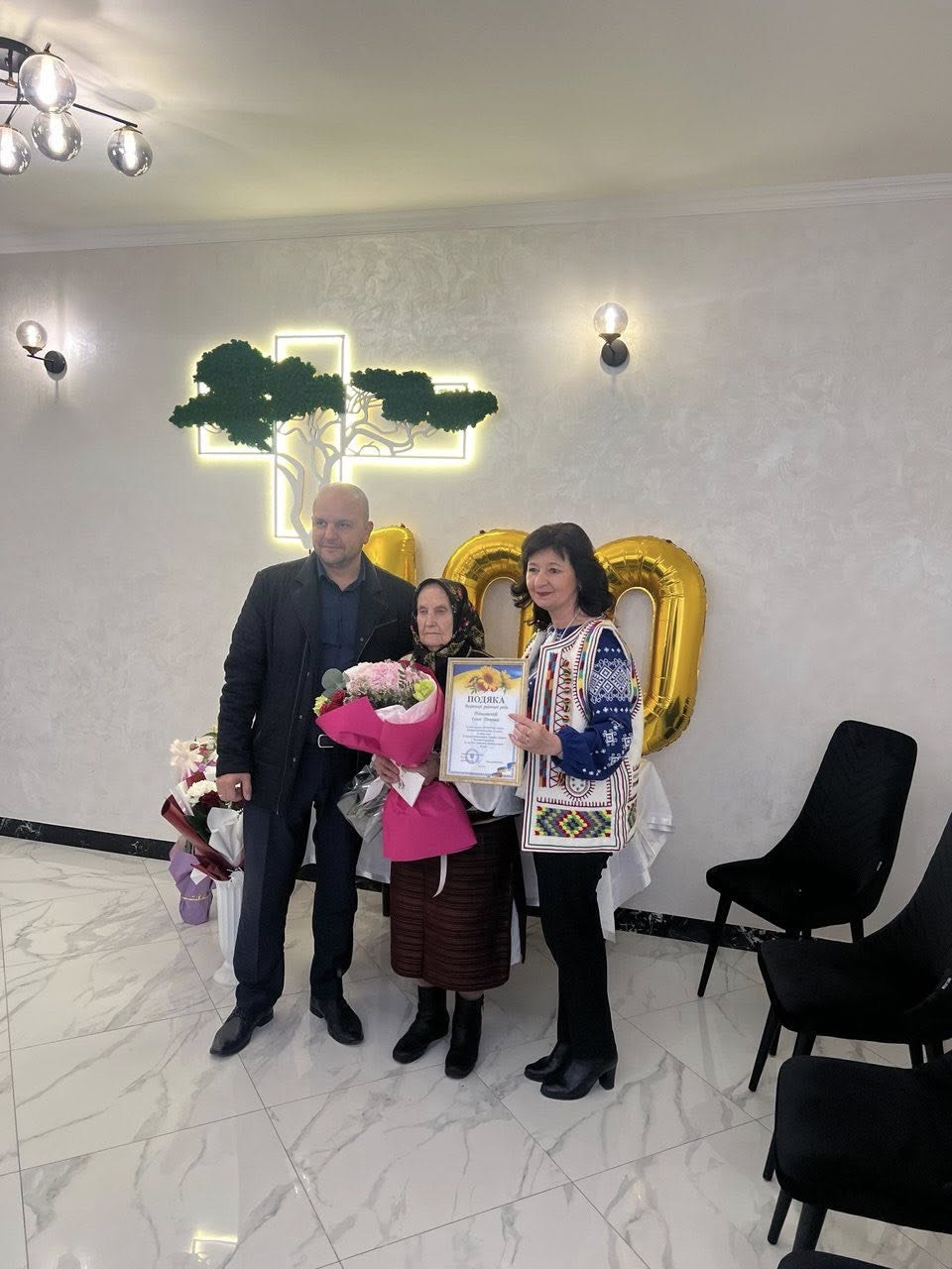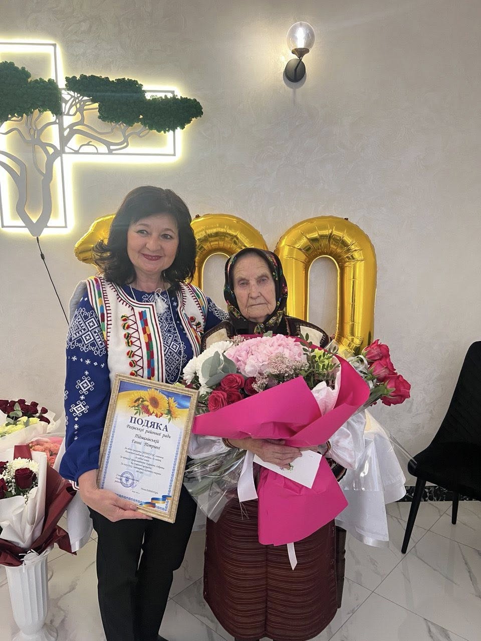 Хай кожен день Вашого життя дарує тепло близьких, щирі усмішки, радісні моменти та відчуття повноти буття. Нехай Ваша мудрість і надалі освітлює шлях наступним поколінням, а Ваше здоров’я буде міцним, як граніт, а дух – незламним, як українська воля! Ми пишаємося тим, що маємо честь вітати Вас із цією знаменною датою – 100-річчям!