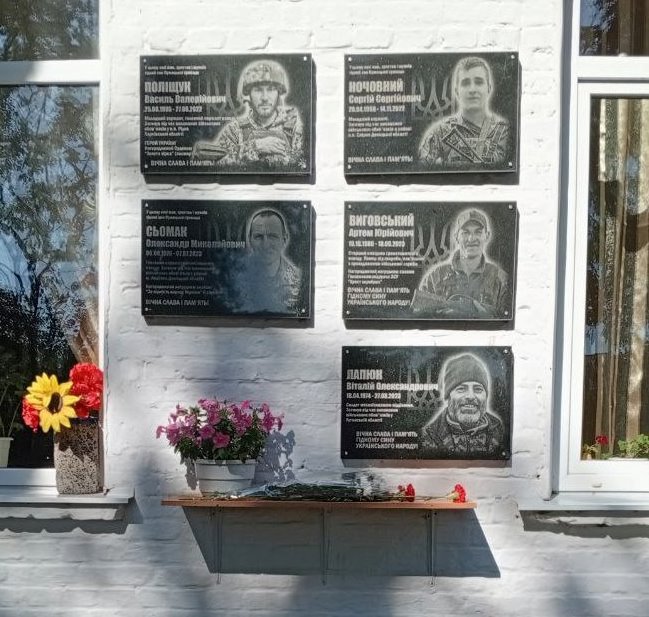 Яскраві усміхнені обличчя наших Героїв, викарбувані на меморіальних дошках, що прикрашають фасад школи, символізують безмежну вдячність, вічну пам’ять і невмирущу любов до тих, хто, на жаль, вже ніколи не переступить шкільний поріг, не зустріне друзів на вулицях рідного села. У кожному імені – унікальна історія життя, у кожному рядку – глибокий біль втрати, але водночас і безмежна гордість за подвиг наших героїв. Пам’ять про полеглих воїнів – це наша спільна сила, що міцно єднає минуле, сьогодення і майбутнє. І доки лунатимуть їхні імена, доти вони будуть жити серед нас, надихаючи своїм прикладом.