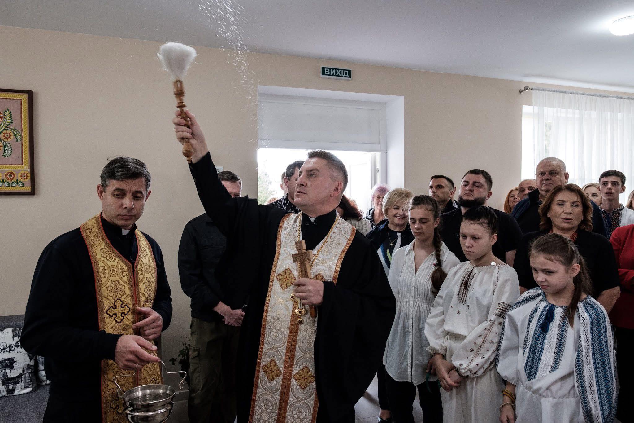 Церемонія розпочалася з виконання Державного Гімну України народною артисткою України, солісткою Львівської національної опери Любов’ю Качалою. Прозвучав духовний гімн «Боже великий, єдиний», вшановано хвилиною мовчання пам’ять загиблих, відбулося урочисте перерізання стрічки та чин освячення приміщення.
