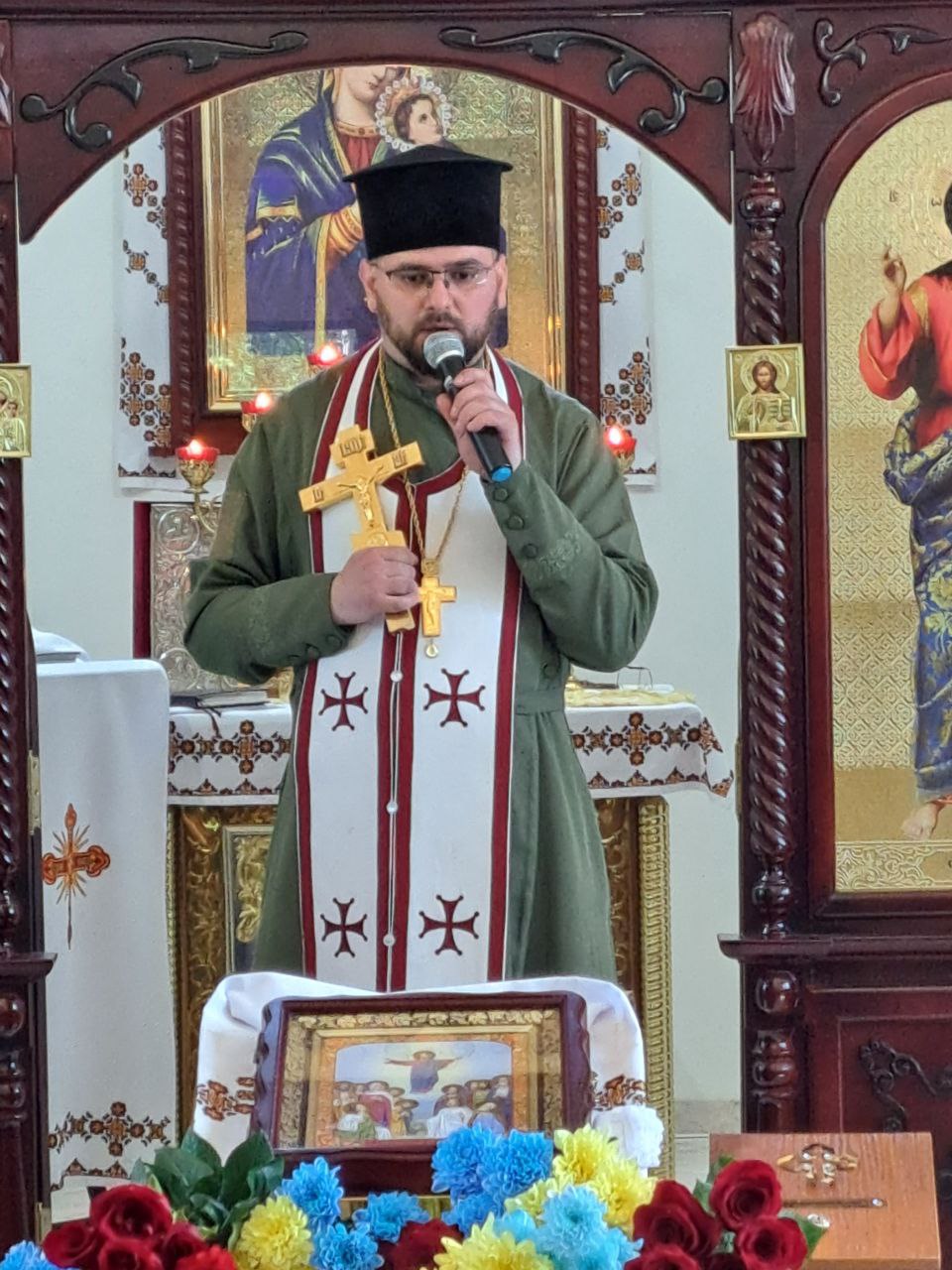 «Бути воїном – це справжнє покликання. У житті ми часто говоримо про покликання до чогось. Воїн – це той, хто відкладає усе, бере до рук зброю і стає на захист рідної землі. Ми розуміємо, яку велику силу потрібно мати, щоб протистояти ворогу, який щодня забирає життя українців. У храмі присутні рідні загиблих, і їм найважче. Вони приходять підтримати одне одного, бо тільки вони знають, що таке справжній біль», – сказав у своїй промові капелан, отець Юрій Логаза.