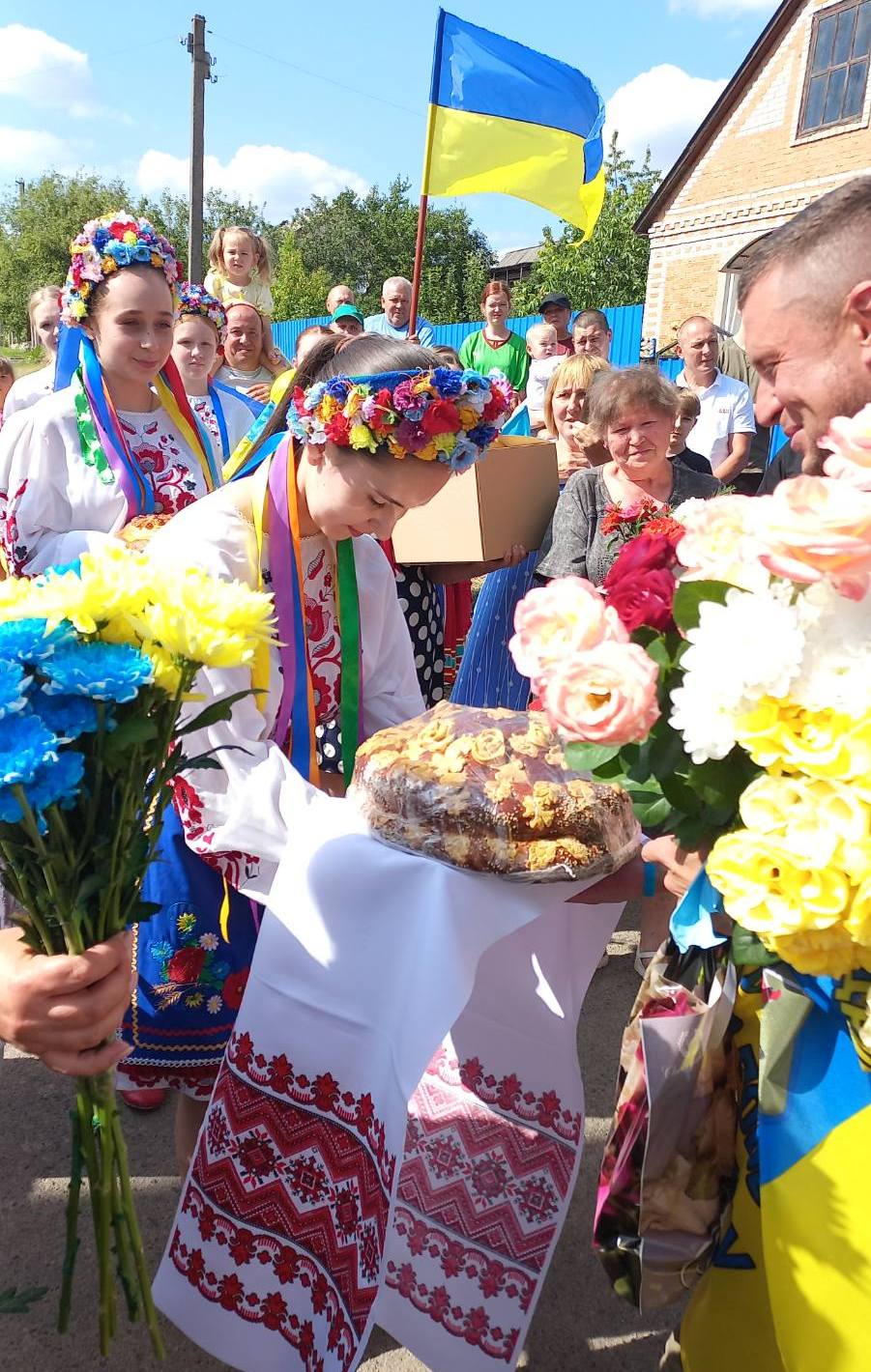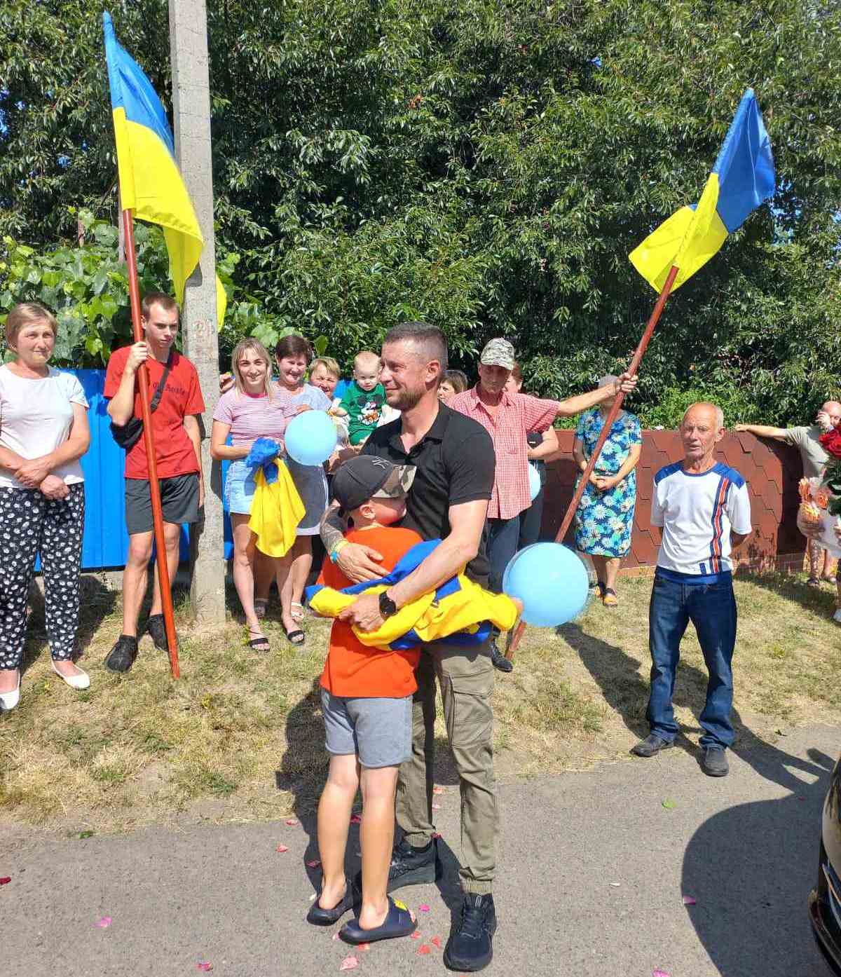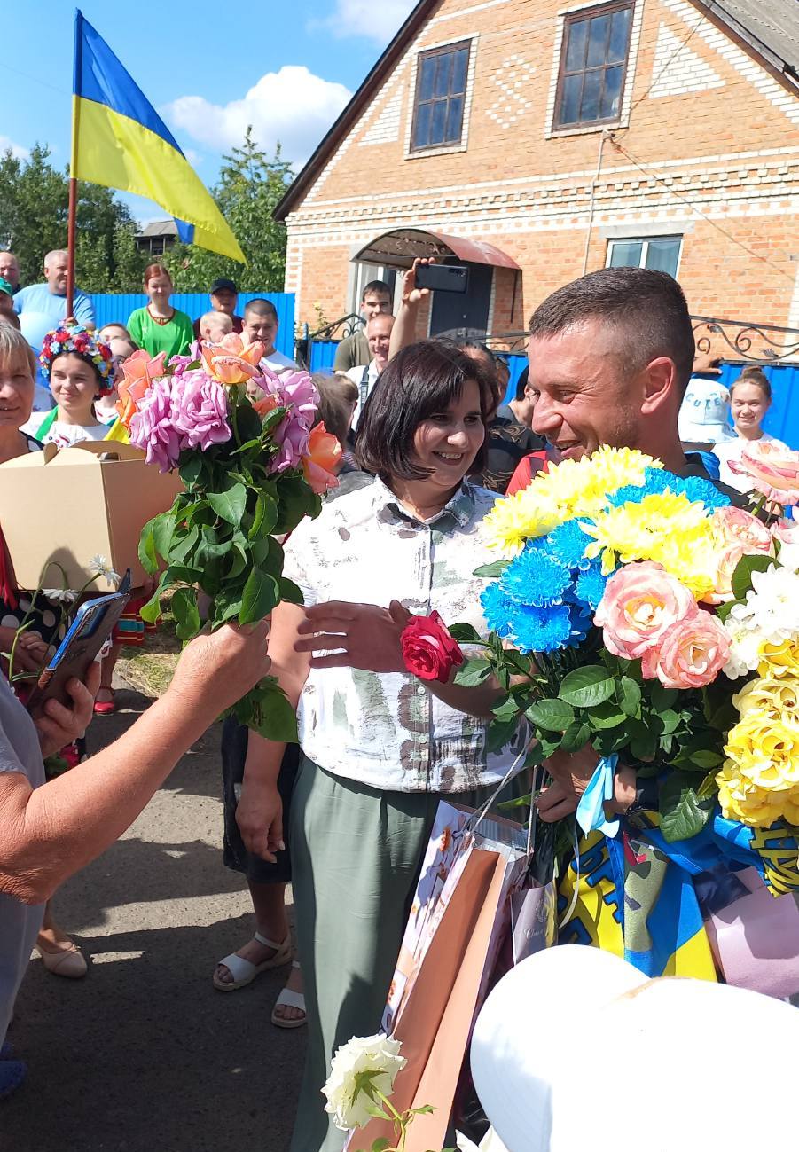 Тепличани зустріли Захисника українським короваєм та квітами, вітали його з поверненням, обіймали і дарували теплі слова подяки, шани та великої поваги.