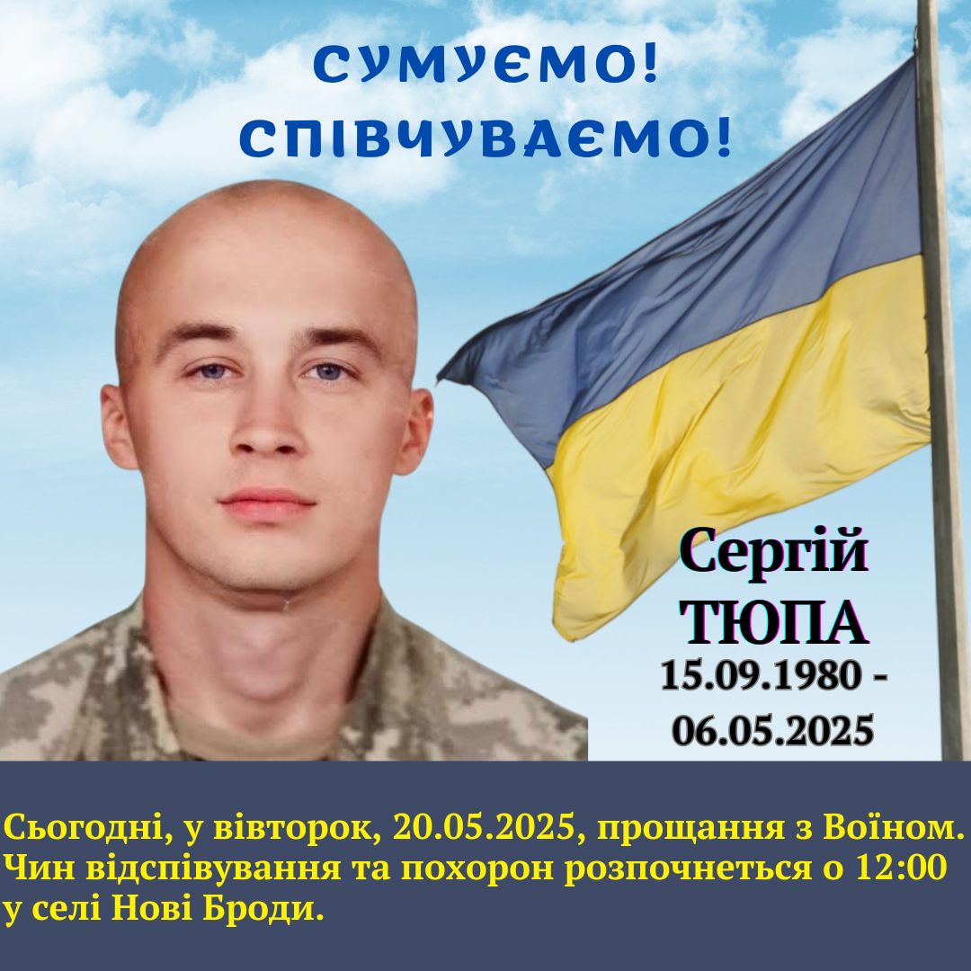 Сьогодні, 20 травня 2025 року, Менська громада з глибоким сумом прощається зі своїм Героєм. У селі Нові Броди, об 12:00, відбудеться чин відспівування та поховання загиблого Воїна, який віддав своє життя, захищаючи нашу Україну. Ми закликаємо всіх небайдужих приєднатися до вшанування пам’яті Героя, віддавши шану його подвигу та жертовності.