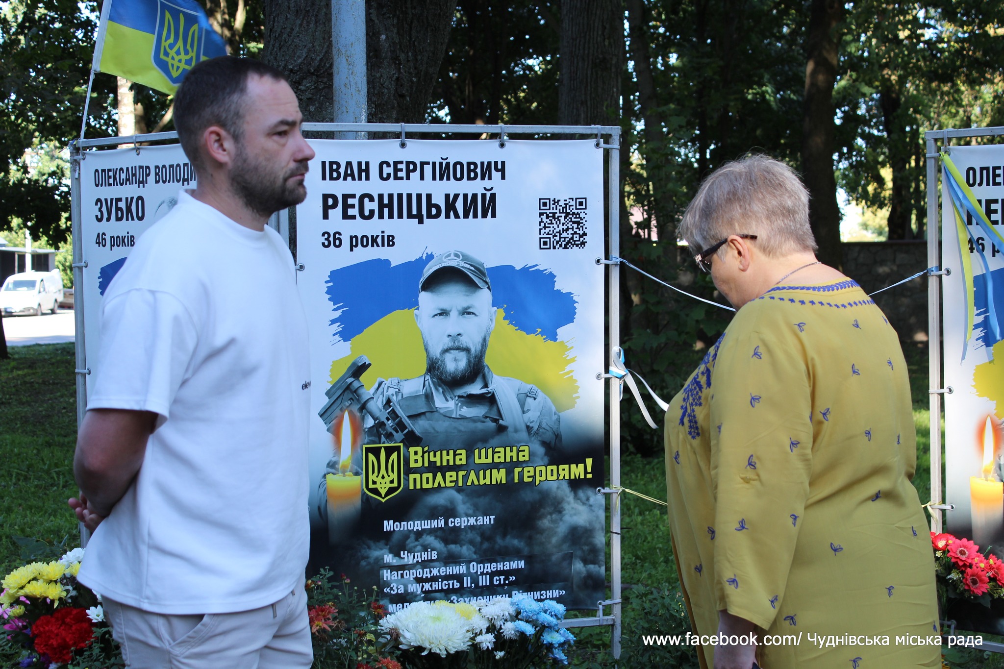🇺🇦🕯У Чуднові, в День пам’яті захисників України, відбулося зворушливе вшанування пам’яті полеглих героїв громади на Алеї пам’яті. Священнослужителі провели освячення пам’ятних банерів, присвячених нашим Героям, які віддали своє життя за свободу та незалежність України. Цей день є нагадуванням про глибоку повагу та безмежну вдячність тим, хто стояв на захисті Батьківщини.