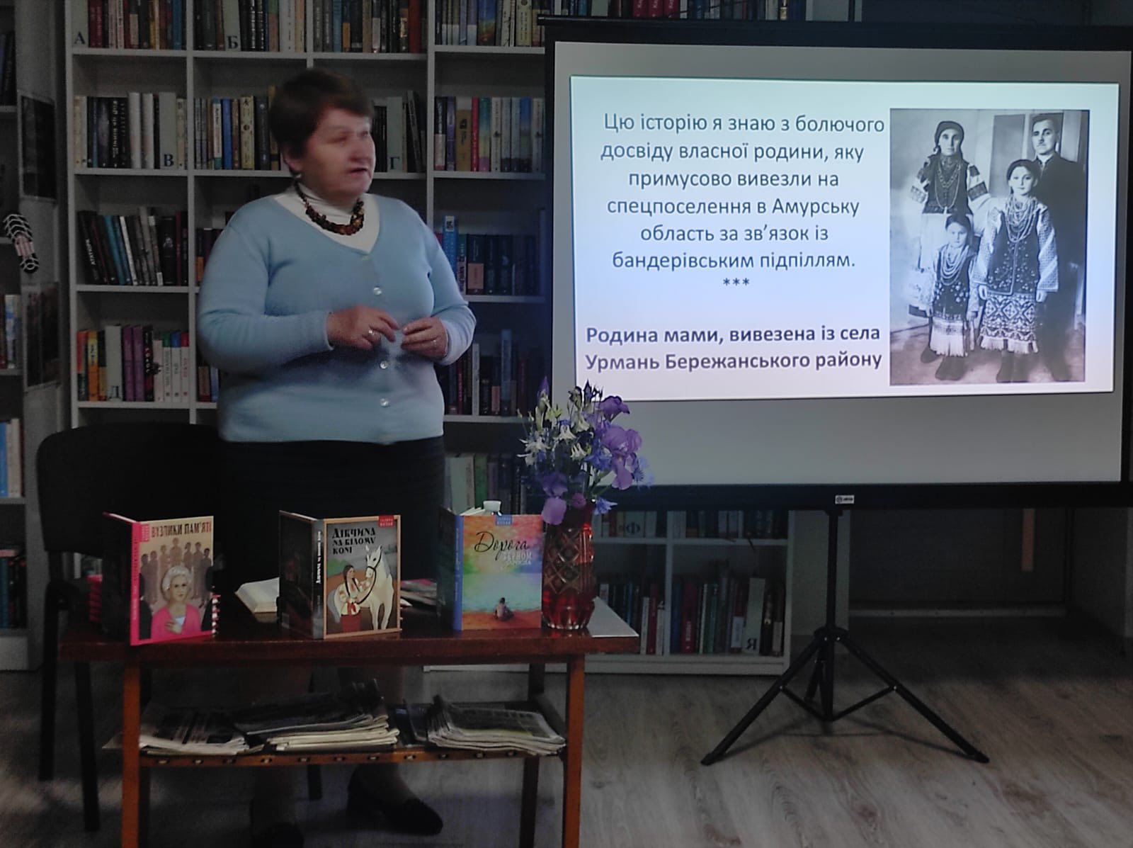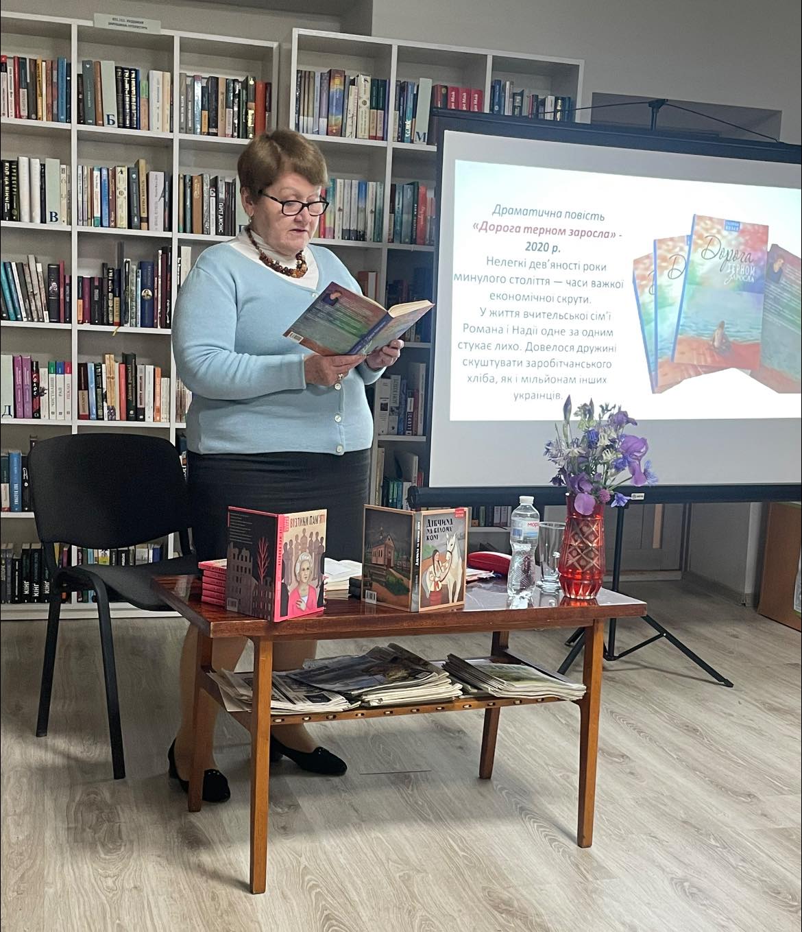 Захід перетворився на щиру розмову та обмін думками. Пані Галина представила свою повість «Вигнанці», яка розповідає про трагічні події виселення західних українців до Сибіру після Другої світової війни. Ця тема є особливо близькою авторці, адже ґрунтується на досвіді її родини. Також був презентований емоційний роман «Дівчина на білому коні», що описує національно-визвольну боротьбу на Тернопільщині у 40-50-х роках ХХ століття. Головна героїня – молода зв’язкова УПА, яка щодня ризикує своїм життям заради свободи України. Для створення цього роману Галина Козак використовувала архівні матеріали військової округи “Лисоня” та ретельно досліджувала історію боротьби УПА.