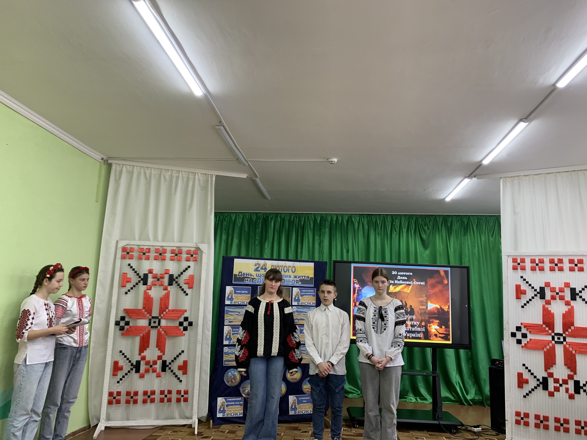 Під час урочистого заходу звучали проникливі вірші та пісні, що передавали глибину переживань та силу духу. Учні ділилися своїми роздумами про важливість єдності, непохитну віру в перемогу та незламність українського народу перед обличчям агресії. Кожна хвилина мовчання була присвячена пам’яті всіх, хто віддав найцінніше – своє життя – за свободу, незалежність та територіальну цілісність України. Ця пам’ять живе в наших серцях і є запорукою майбутніх перемог.