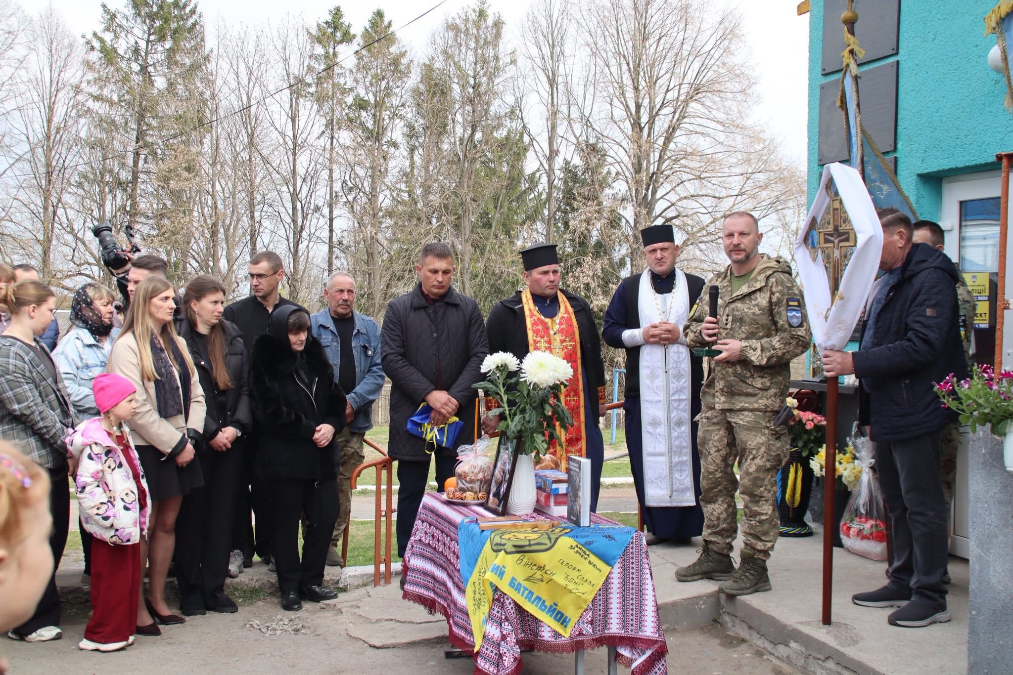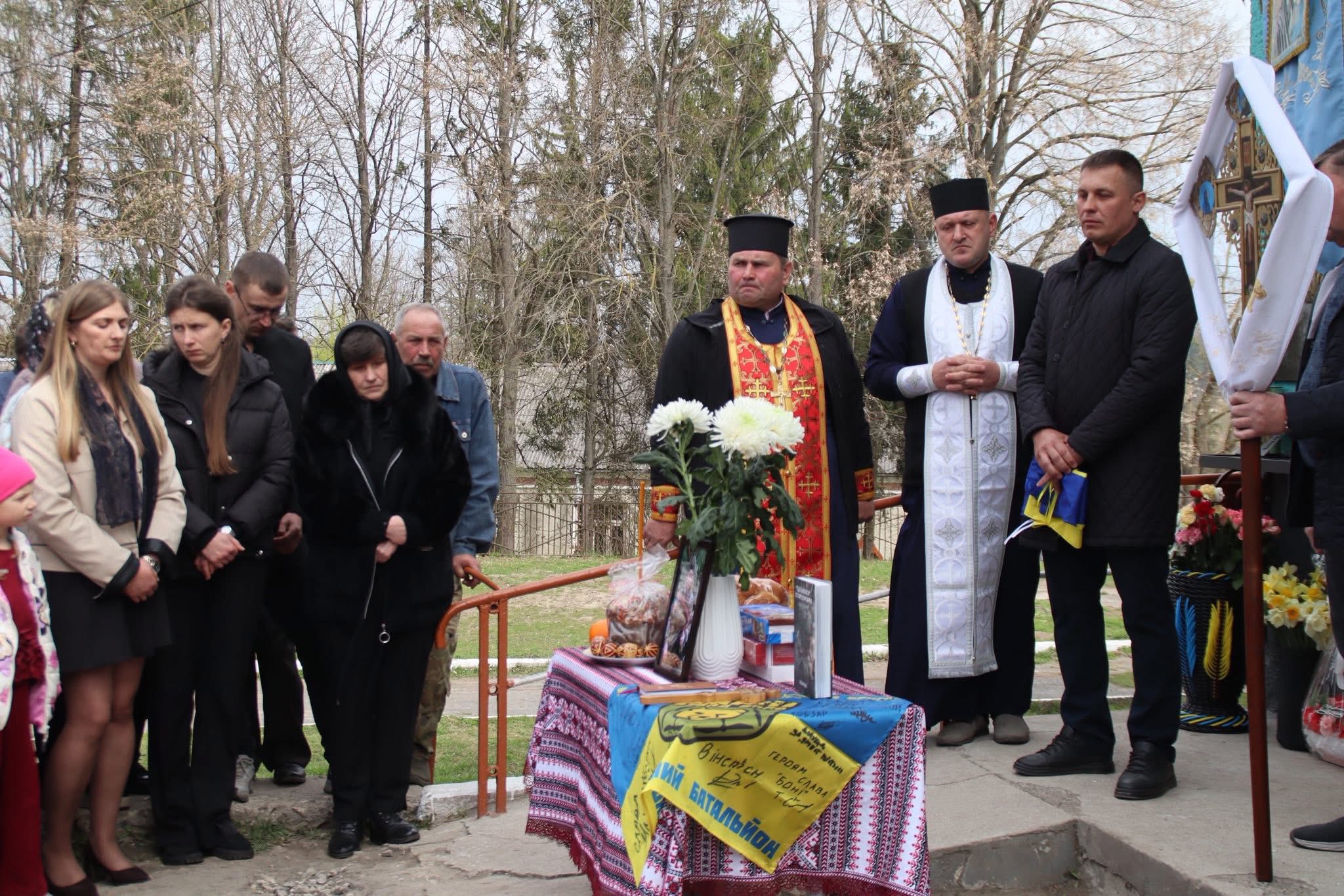 На шкільному подвір’ї зібралися батьки, дружина та рідні, представники місцевої влади, військові, учні, вчителі, односельчани — усі, хто знав і пам’ятає Володимира та прийшов віддати йому шану.