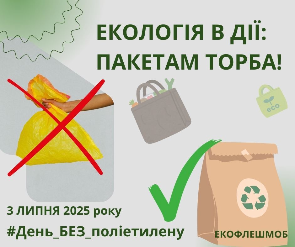 Сьогодні, 03 липня, світ відзначає Міжнародний день відмови від поліетиленових пакетів, нагадуючи про нагальну необхідність зміни наших споживчих звичок задля збереження природи. Цей день є важливою віхою у глобальній боротьбі із забрудненням довкілля пластиком, що становить серйозну загрозу для всієї планети. Відмова від пластику – це не просто тренд, а життєва необхідність, що впливає на майбутнє наших дітей та стан екосистем. З цією нагоди Департамент екології та природних ресурсів Чернігівської облдержадміністрації ініціював екологічний флешмоб під назвою «ЕКОЛОГІЯ В ДІЇ: ПАКЕТАМ ТОРБА!», закликаючи всіх мешканців та гостей регіону долучитися до цієї важливої природоохоронної акції. Метою цього заходу є не лише привернення уваги до катастрофічного надмірного використання одноразового пластику, а й формування глибоко відповідального ставлення до процесу споживання та утилізації ресурсів, які шкодять навколишньому середовищу. Це ключовий крок до сталого споживання. Чому ж відмова від поліетиленових пакетів є настільки критично важливою для нашого довкілля? Статистика вражає і спонукає до негайних дій. Щороку у світі виробляється понад 13 мільярдів поліетиленових пакетів, і лише мізерні 10-15% з них підлягають переробці. Це означає, що переважна більшість цих виробів потрапляє на звалища, в океани та ліси, забруднюючи ґрунт і воду. Щохвилини використовується близько 1 мільйона пакетів, що створює величезне навантаження на природні екосистеми. Найбільш тривожним є факт, що поліетилен розкладається в природі понад 200 років, а пластик – до 450 років, а то й довше, фактично ніколи не зникаючи повністю, а розпадаючись на мікропластик. Ці мікрочастинки проникають у воду, ґрунт, повітря і навіть у наш харчовий ланцюг, несучи потенційну загрозу для здоров’я людини та тварин. Крім того, виробництво одноразового пластику є одним із значних чинників глобальної кліматичної кризи, оскільки потребує великої кількості викопного палива та супроводжується значними викидами парникових газів. Захист довкілля починається з усвідомлення цих проблем. Як саме можна долучитися до флешмобу 3 липня та зробити свій внесок у боротьбу з пластиком? ✅️ Перш за все, слід свідомо відмовитися від поліетиленових пакетів під час покупок та у повсякденному житті. Цей простий крок має величезне значення. ✅️ Натомість використовуйте екологічні альтернативи. Екоторбинки з натуральних матеріалів (бавовни, льону, джуту), багаторазові сітки для овочів та фруктів, паперові пакети та інші предмети багаторазового використання, що не шкодять довкіллю, стануть вашими надійними помічниками. Сучасний ринок пропонує безліч стильних та практичних рішень для сталого споживання. ✅️ Активно поширюйте інформацію про флешмоб та шкоду пластику серед своїх друзів, родичів та колег. Соціальні мережі, особисті розмови, освітні ініціативи – будь-який спосіб інформування допоможе посилити ефект. Що більше людей дізнається про переваги відмови від пластику, то швидше ми зможемо досягти значних змін. Формування культури відповідального споживання – це завдання, що стосується кожного. Кожен наш маленький крок, спрямований на відмову від пластику, є частиною великих змін для природи. Давайте разом робити усвідомлений вибір на користь екології та чистого майбутньог