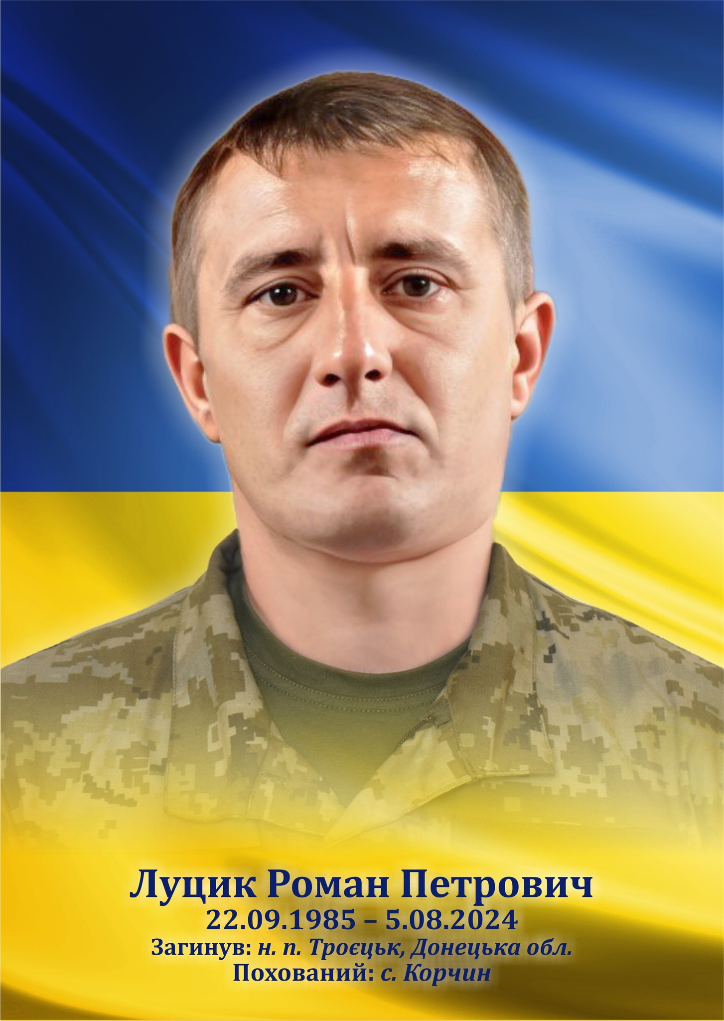 Сьогодні, 05 серпня, громада в скорботній молитві схиляє голову перед світлою пам’яттю новітнього Героя Луцика Романа Петровича, уродженця с. Корчин. Пройшов рік невимовного болю втрати, рік зламаних надій і сподівань. Вічна пам’ять Тобі, дорогий Герою! У наших серцях Ти назавжди.