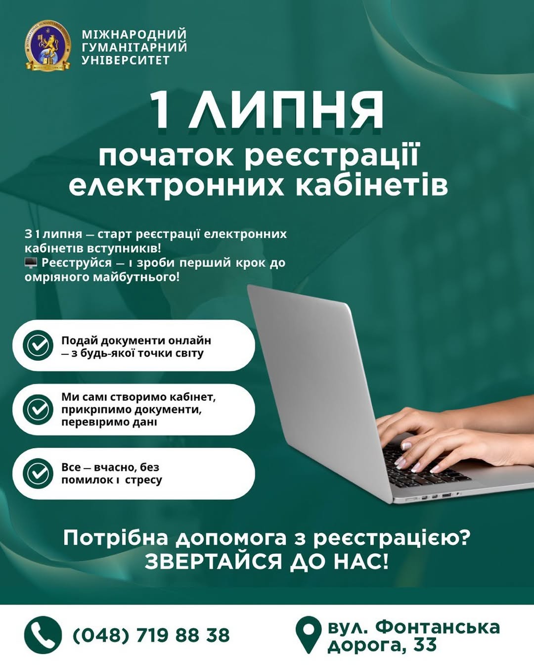 Для отримання додаткової інформації або консультацій, будь ласка, звертайтеся за контактними даними Міжнародного Гуманітарного Університету: