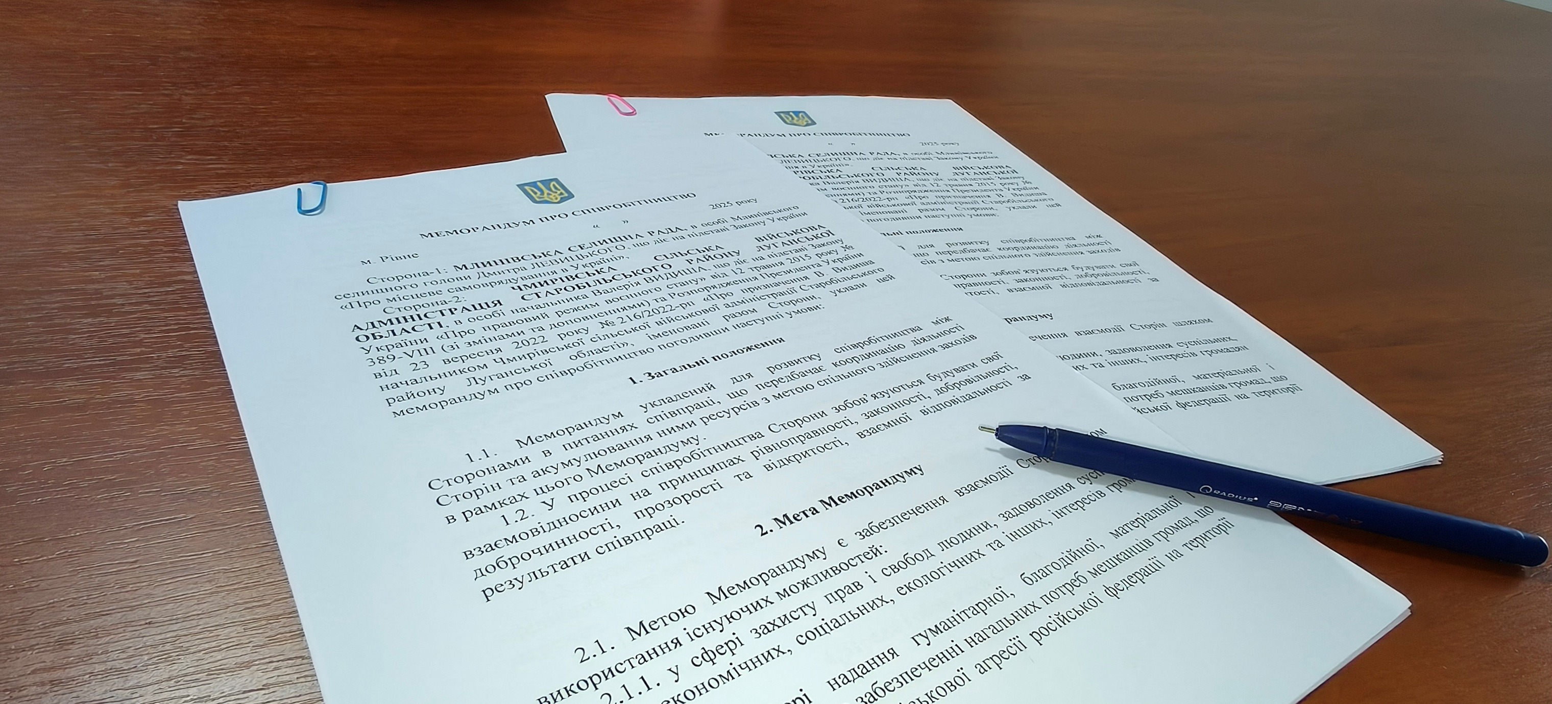✅Предметом цього меморандуму є співпраця Млинівської та Чмирівської громад, яка має на меті сприяння покращенню життя і добробуту та надання допомоги найменш соціально захищеним верствам Чмирівської громади Старобільського району Луганської області, які у зв’язку зі збройною агресією рф, були вимушені евакуюватися до інших населених пунктів України.