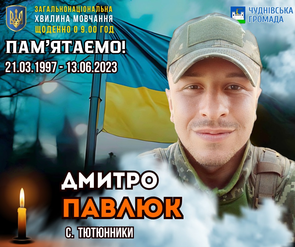 Сьогодні, 13 червня, минає рік з того трагічного дня, коли війна забрала життя мужнього Героя, нашого земляка з Тютюнників – Дмитра Олександровича Павлюка. Він загинув під час штурмових дій, захищаючи Україну в районі Великої Новосілки, Волноваського району, Донецької області.