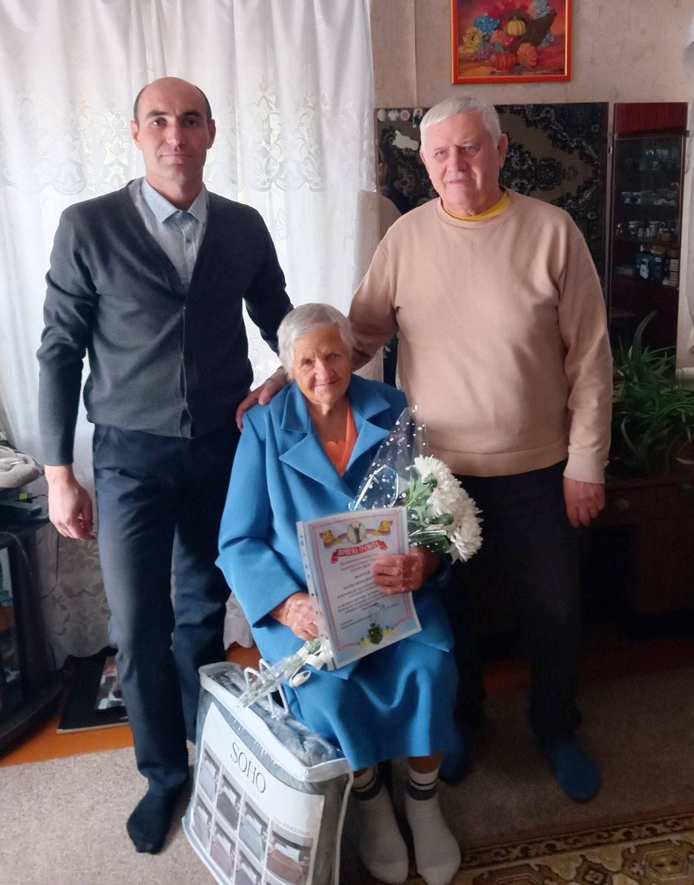 З нагоди такого визначного ювілею, 90-річчя, Марію Володимирівну привітали офіційні представники. Теплі слова побажань здоров’я та мирного неба висловили Віталій Жмак – староста Новознам’янського старостинського округу, Петро Ковінько – голова ради Кременчуцької районної організації ветеранів, працівники соціального захисту та голова ради ветеранів Новознам’янського старостинського округу. Їхні привітання підкреслили шану та повагу до цієї видатної жінки.