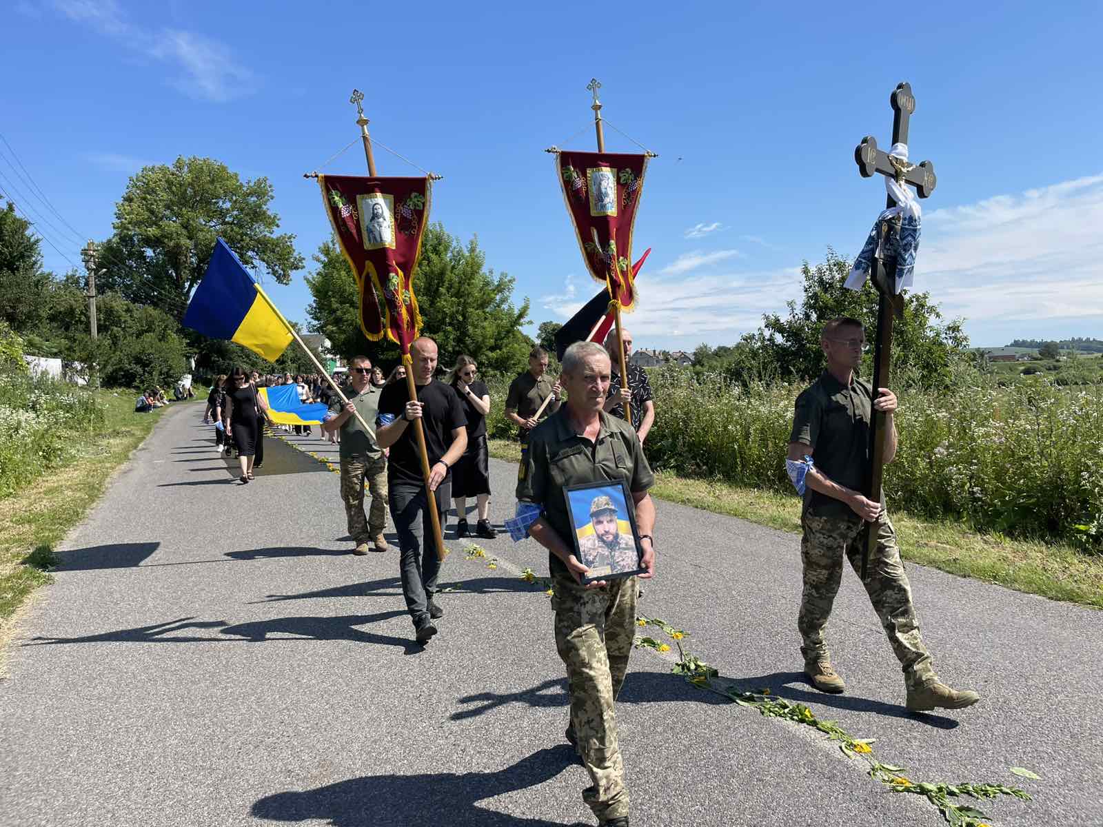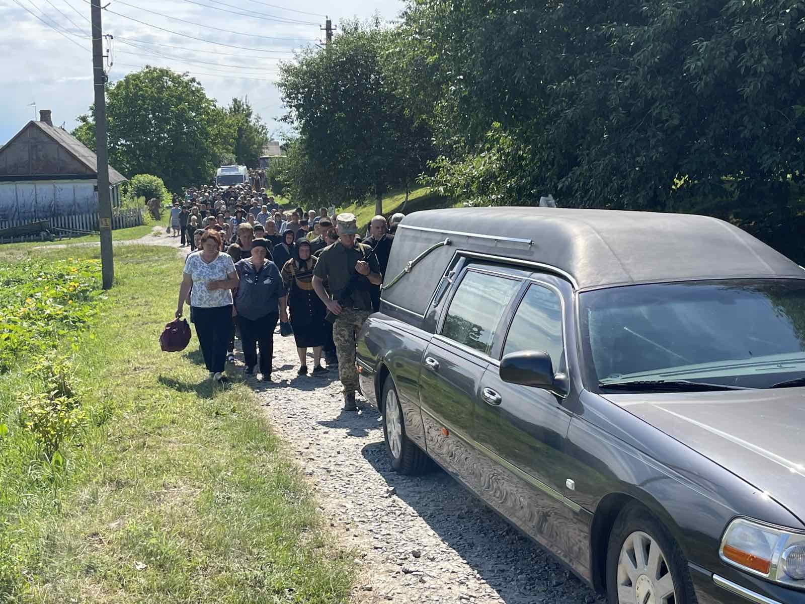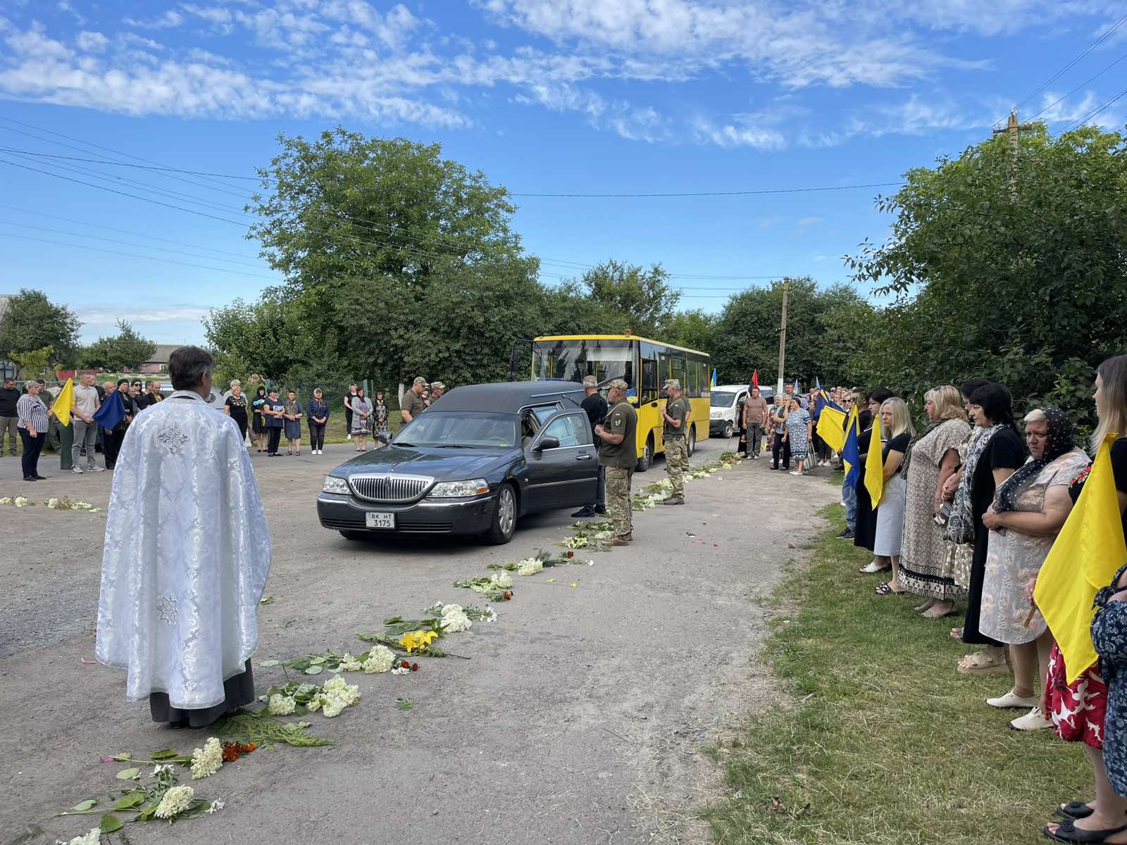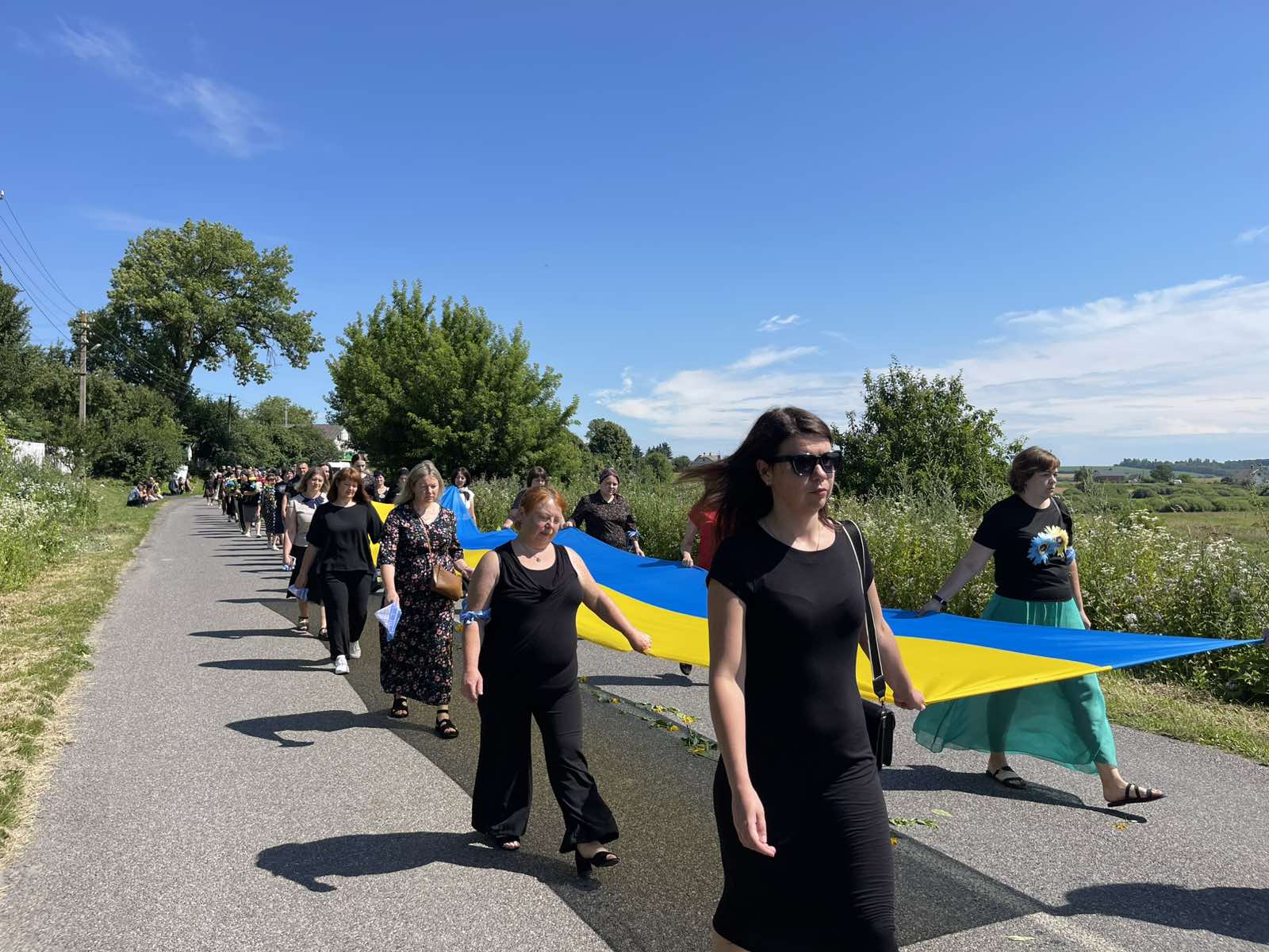 Мешканці громади зібралися, щоб з гідністю віддати шану та попрощатися з Героєм, який віддав своє життя за свободу, незалежність і майбутнє нашої держави. Люди утворили живий коридор, схиливши голови в глибокій скорботі та вдячності, зустрічаючи траурну процесію.