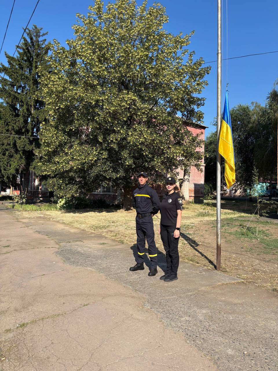 Першим відбувся урочистий момент підняття Державного Прапора України — символу свободи, єдності та незламності нашого народу. Право підняти Прапор було надано дільничій офіцерці поліції Аліні Сухомліновій та пожежному-рятувальнику Дмитру Чепуріну.