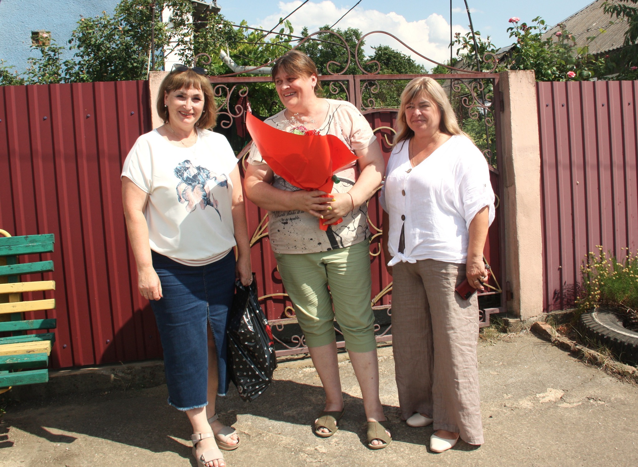 Із цією визначною подією ювілярку прийшли привітати секретар Окнянської селищної ради Олена Артьомова та начальник відділу соціального захисту населення Олена Толстенко. Гості побажали іменинниці міцного здоров’я, благополуччя, довголіття, підтримки і уваги близьких людей, а також вручили доньці, яка піклується про маму, подарунок і квіти.