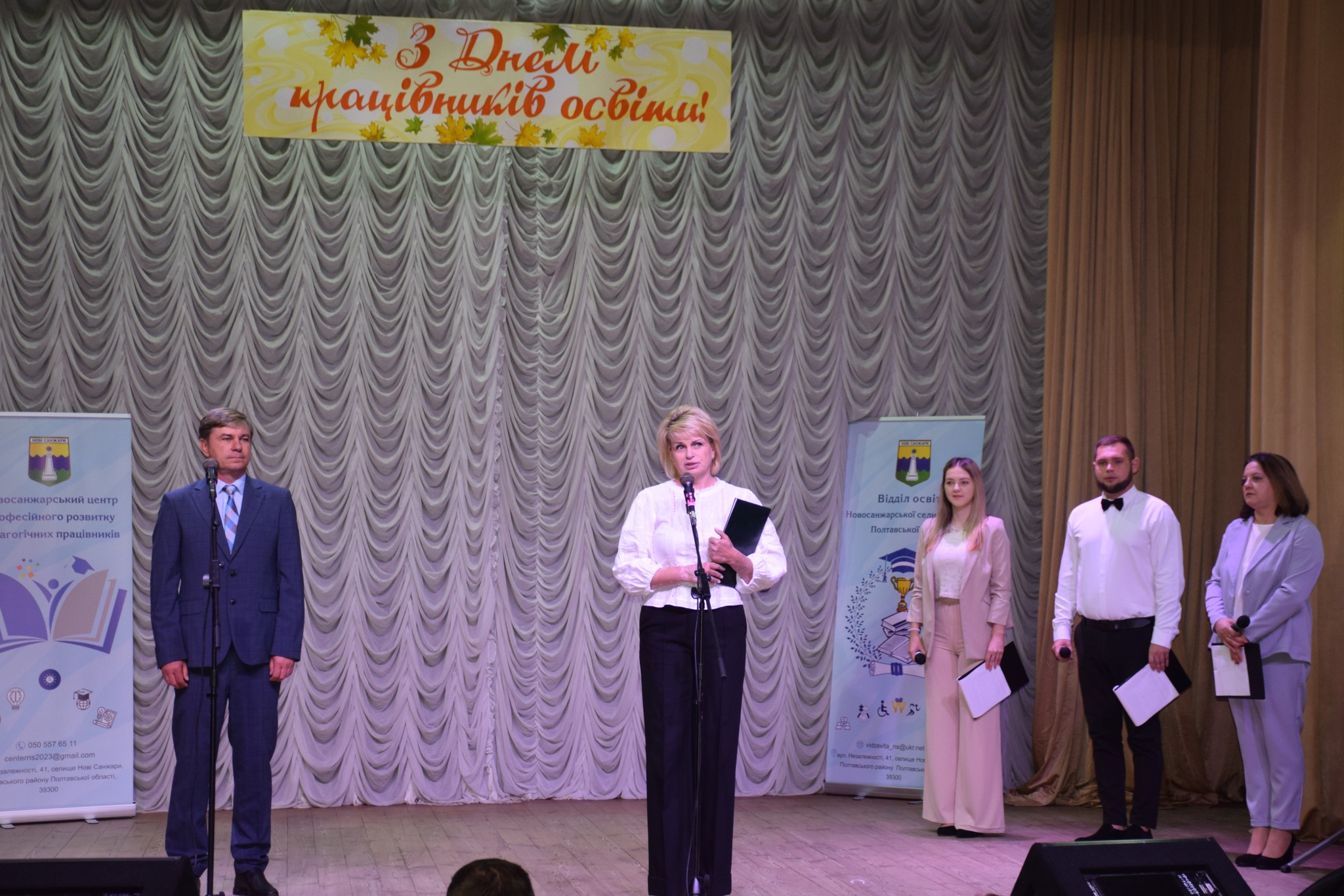 📚📖🎉 2 жовтня, напередодні професійного свята, в Новосанжарському селищному культурно-мистецькому центрі відбулися урочистості, присвячені Дню працівників освіти. Це свято є чудовою нагодою відзначити внесок освітян у розвиток громади та вшанувати їхню самовіддану працю. На заході були присутні шановані гості: голова громади Геннадій Супрун, депутат обласної ради Лариса Босенко, начальник відділу освіти Ірина Татамірова, голова профспілки освітян Катерина Гаврилюк, а також колеги та ведучі свята. Вони висловили слова подяки та підтримки всім, хто присвятив своє життя педагогічній ниві.