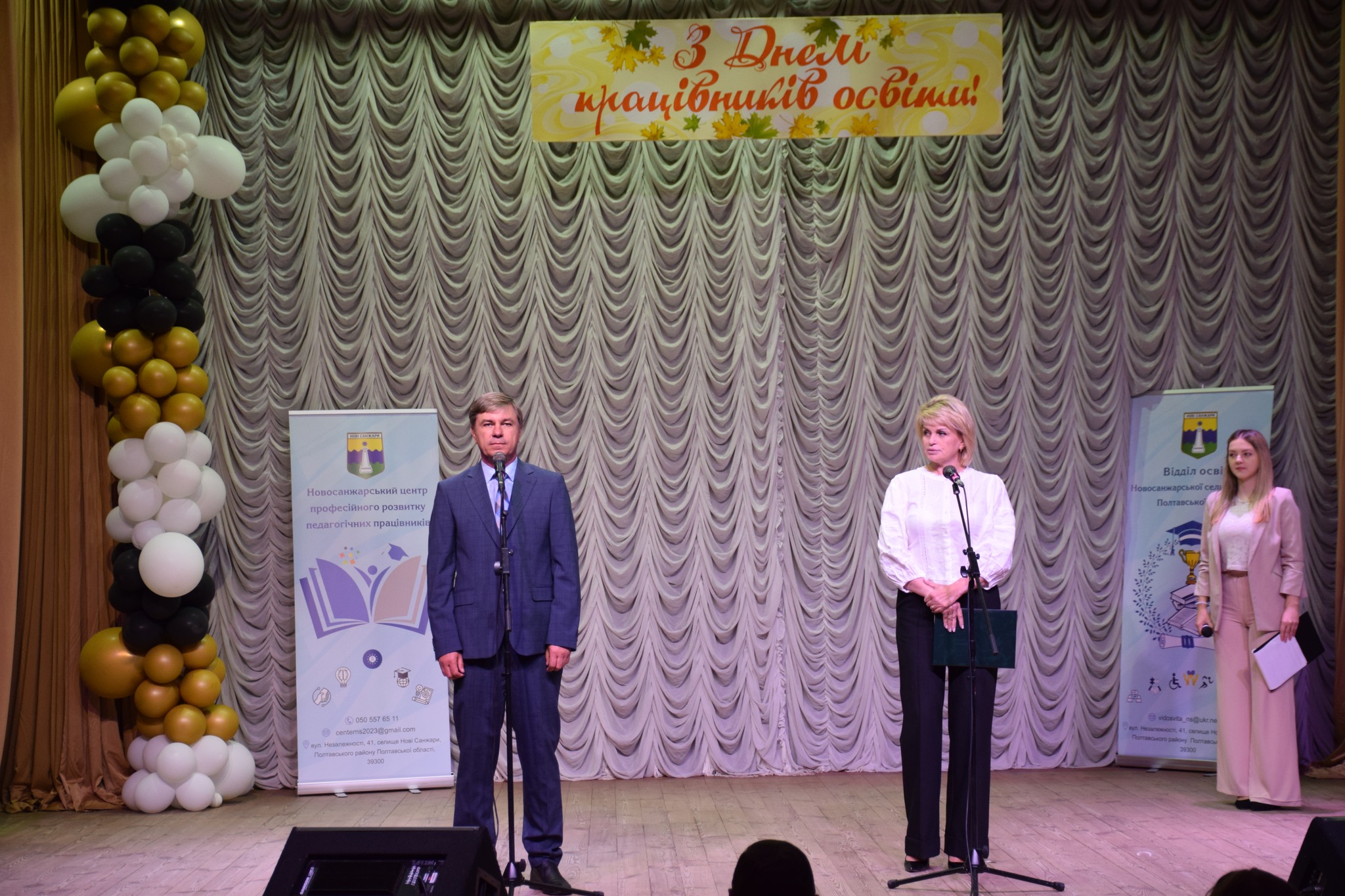 🎼 Атмосферу свята доповнили чудові музичні виступи. Для всіх присутніх виступали місцевий зразковий естрадний колектив «Веселка» та відомий гурт «Краяни», подарувавши незабутні емоції та святковий настрій. Такі культурні заходи є надзвичайно важливими для громади, адже вони об’єднують людей та створюють позитивне підґрунтя для подальшого розвитку. День працівників освіти на Новосанжарщині пройшов у теплій та дружній атмосфері, підкресливши важливість і цінність праці кожного освітянина.