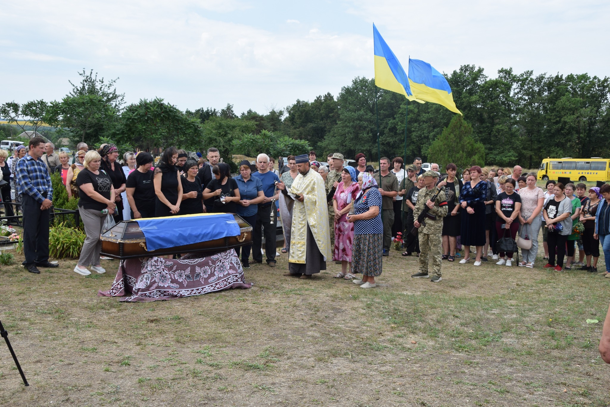 Сьогодні, 21 липня, Україна з глибоким сумом прощається зі своїм Героєм, майором Джумою Олександром Михайловичем, заступником командира батальйону з морально-психологічного забезпечення. Олександр Михайлович віддав найцінніше – своє життя – за свободу та незалежність нашої держави. Його життєвий шлях обірвався 18 липня 2022 року під час виконання бойового завдання поблизу села Князівка на Херсонщині, коли він потрапив під вибух міни. Три роки рідні чекали та вірили в диво, що Олександр живий, але доля розпорядилася інакше. Герой повернувся додому на щиті, мужньо віддавши життя за наш спокій. Його загибель залишила глибоку скорботу в серцях матері, дружини та двох маленьких синів. В останню земну дорогу Олександра Михайловича проводжали в рідному дворі, де зібралися всі: родина, сусіди, односельчани, друзі та знайомі. Мати та дружина, схилившись над труною, не могли стримати гірких сліз. Їхня надія, любов та гордість спочивали в домовині, і лише сльози могли виразити той невимовний біль, що розривав їхні серця. Ймовірно, Джум Олександр Михайлович мріяв про інше повернення додому. Він мріяв обійняти своїх рідних, привітати їх з Перемогою. Але цій мрії не судилося збутися. Він віддав своє життя, щоб ця мрія стала реальністю для інших. Військовослужбовця з усіма військовими почестями провели до місця вічного спочинку на цвинтарі в селі Новому Стародубі. На честь захисника пролунали Державний Гімн України та військовий салют. Джум Олександр Михайлович приєднався до лав небесного війська, і його пам’ять назавжди залишиться в серцях тих, хто його любив, поважав та цінував. Йому навічно залишилося 42 роки. Вічна пам’ять, шана та слава Герою-захиснику! Слава Україні! Героям Слава!