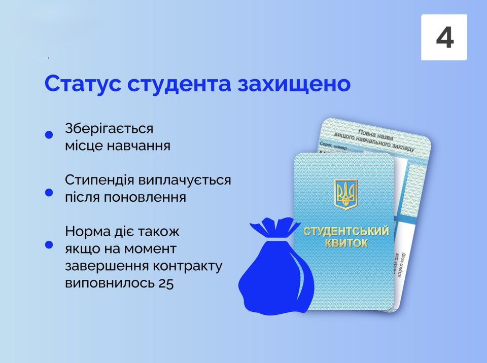 🔹 Гарантію виплати стипендії після поновлення навчання, навіть якщо військовослужбовець досяг 25-річного віку до завершення контракту.