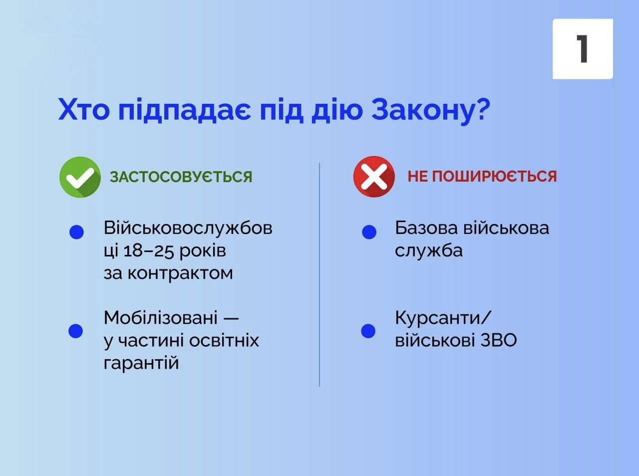Цей закон стосується таких категорій військовослужбовців: