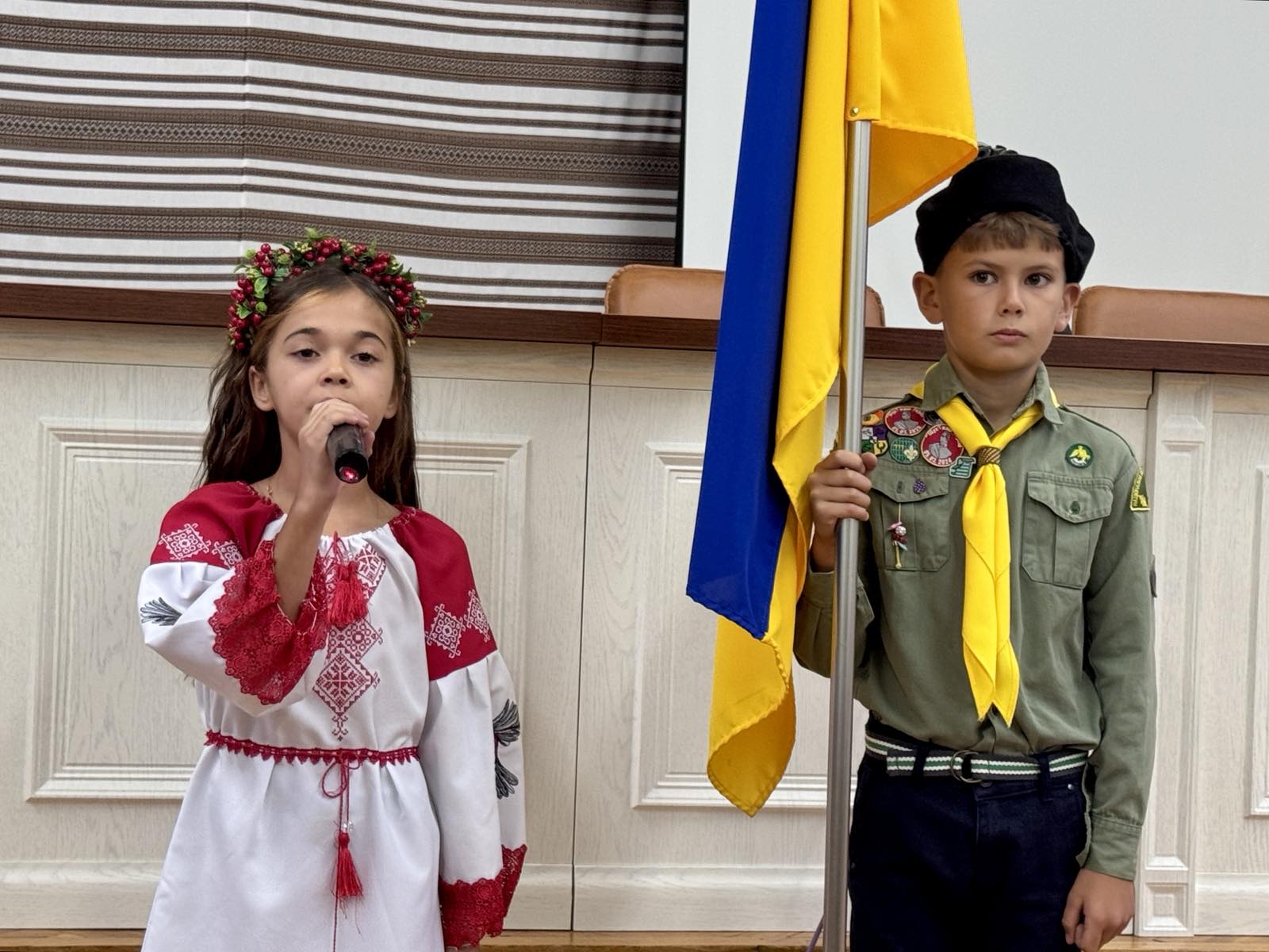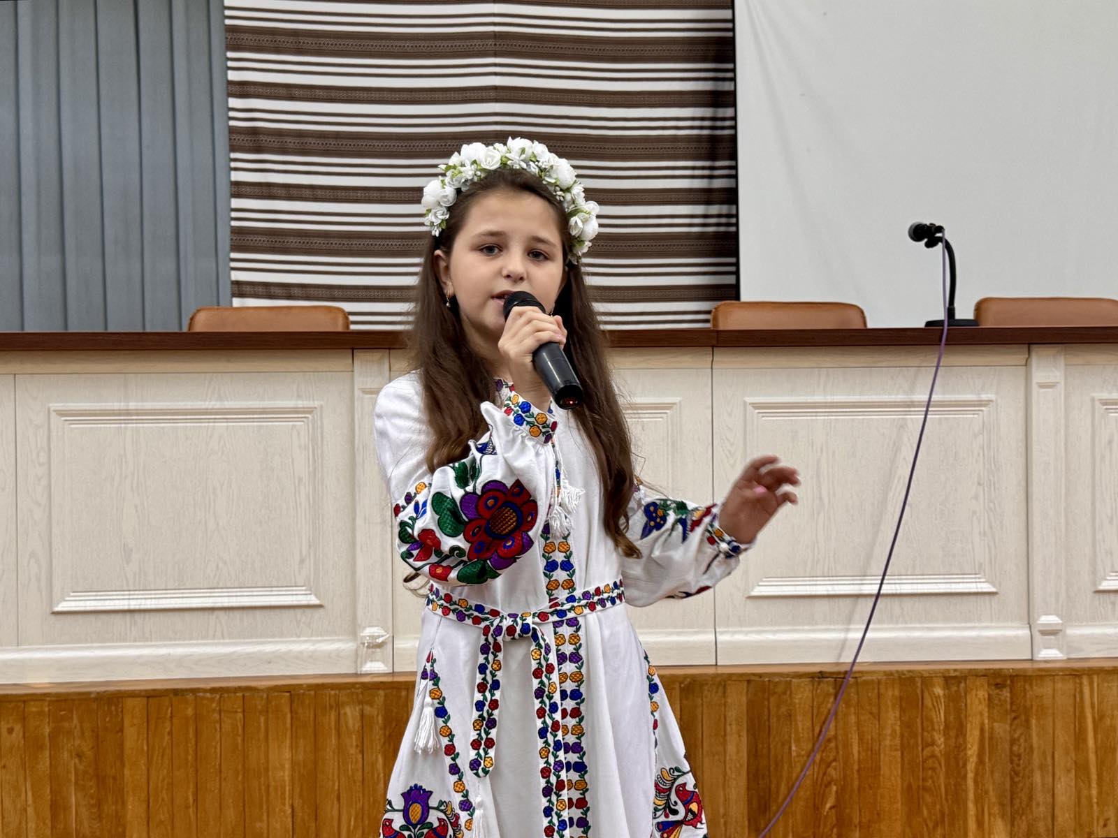 Особливо зворушливим моментом стало декламування поезії «Знамено» Вікторією Теслюк, талановитою учасницею драматичного гуртка (керівник – Зоряна Чупик). Під час її виступу на сцену вийшов прапороносець із величним синьо-жовтим стягом, символізуючи нерозривний зв’язок між українським народом, його славетною історією та найголовнішим державним символом. Цей образ став потужним нагадуванням про важливість єдності та національної гідності.