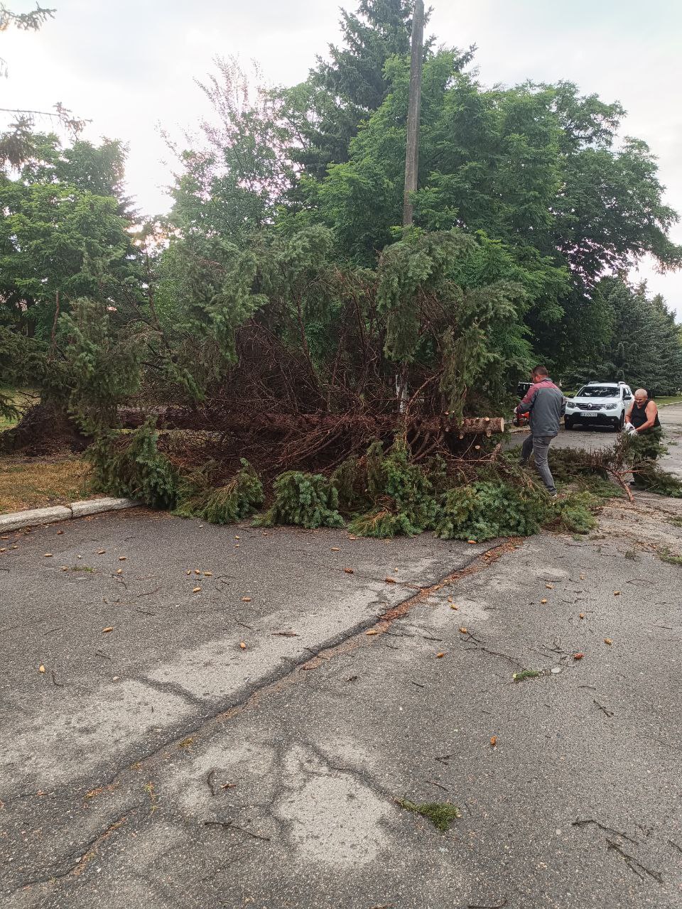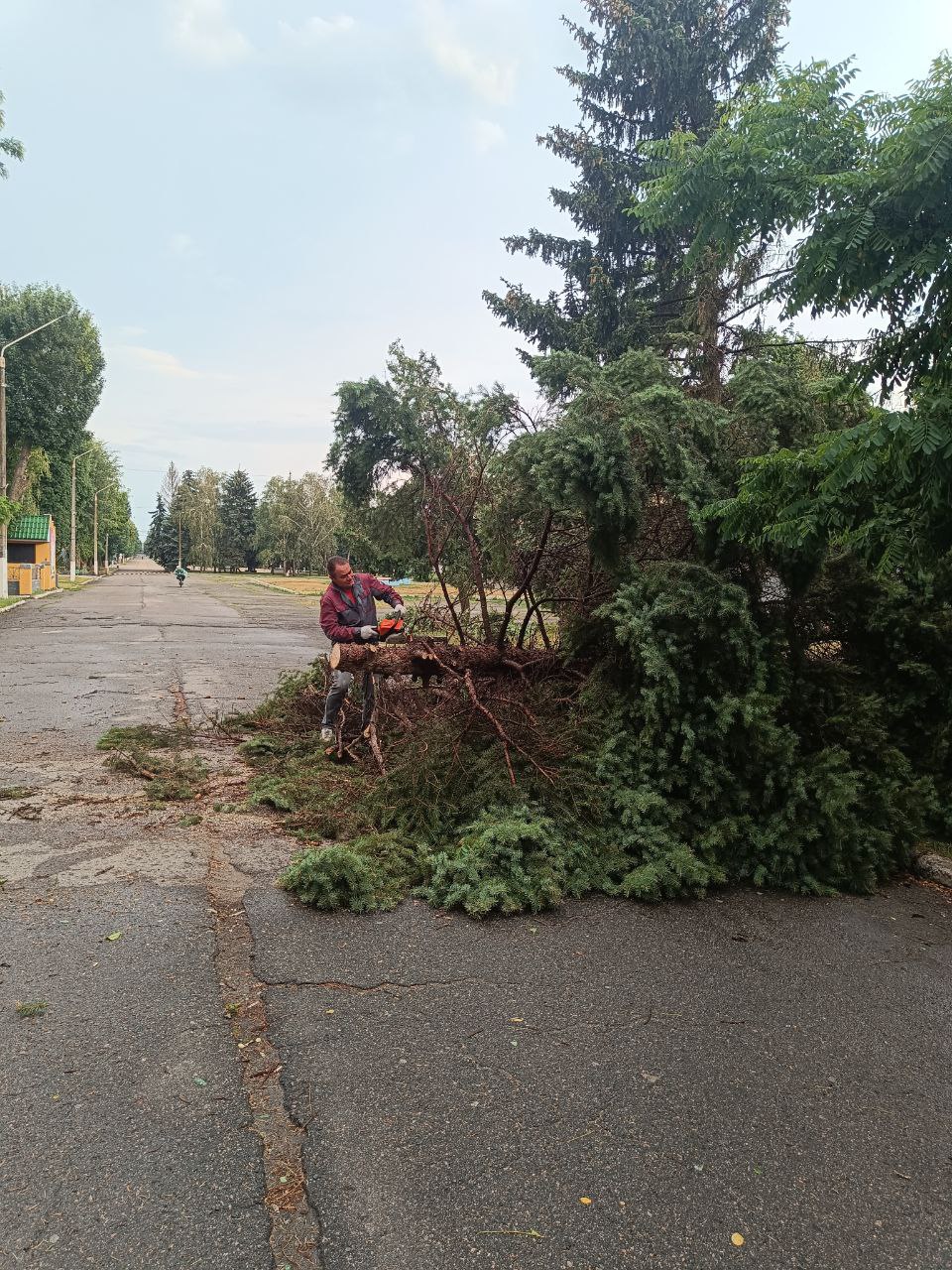 Наразі працівники «Комунального сервісу» усувають наслідки стихії. Вони пиляють і вивозять повалені дерева й зламані гілки з тротуарів, доріг та прибудинкових територій. Працюватимуть допізна, щоб якнайшвидше ліквідувати всі наслідки буревію та забезпечити безпеку містян.