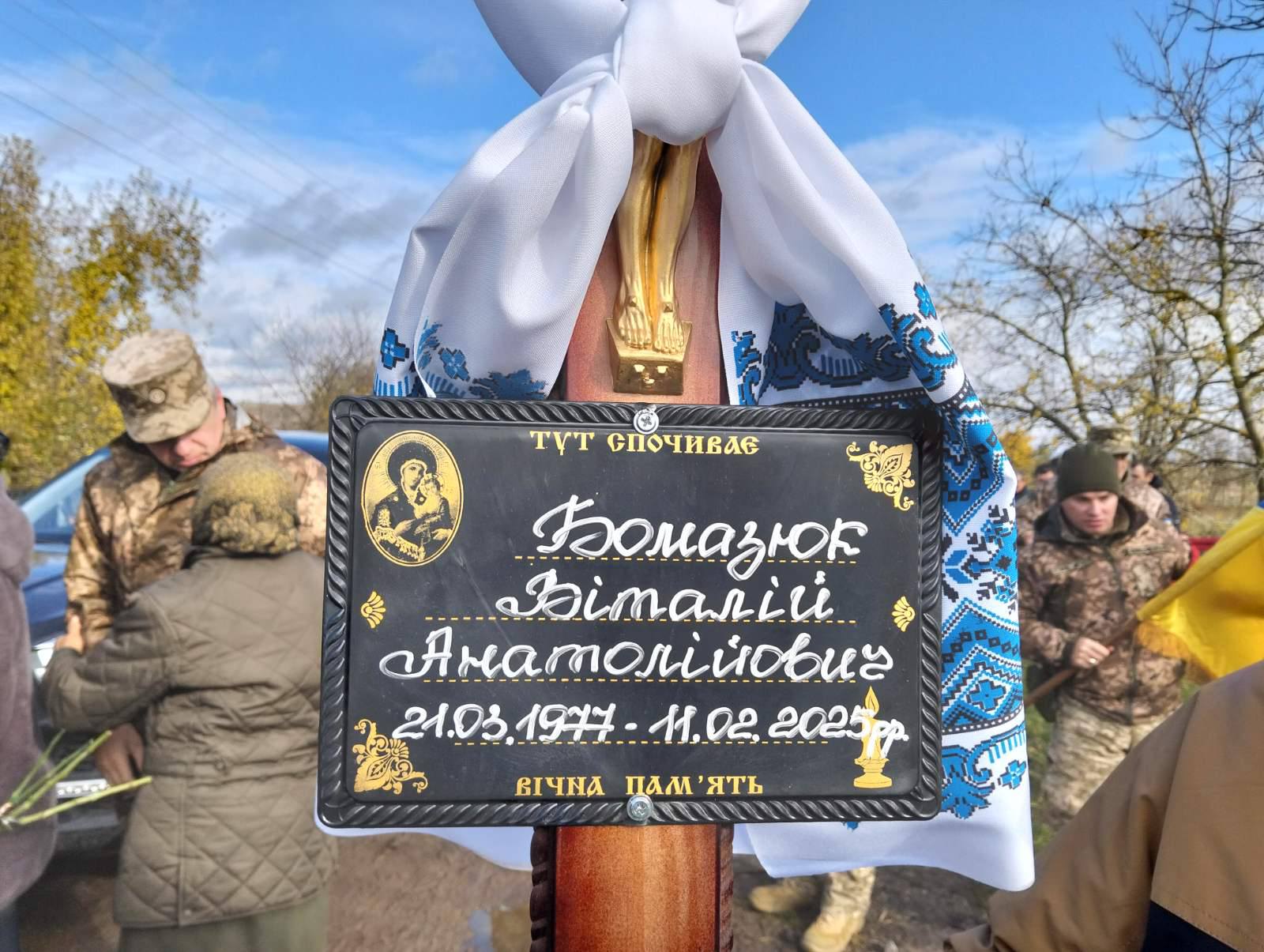 Сьогодні, 25 жовтня, Україна попрощалася з Героєм – Бомазюком Віталієм Анатолійовичем, який народився 21 березня 1977 року та віддав життя за Батьківщину 11 лютого 2025 року. Довгий час Віталій Анатолійович вважався безвісти зниклим, але тепер його подвиг став частиною нашої національної історії. Прощання з Героєм відбулося з усіма належними військовими почестями, що є лише малою часткою тієї шани, яку ми маємо віддати тим, хто жертвує найціннішим заради нашої свободи та незалежності.