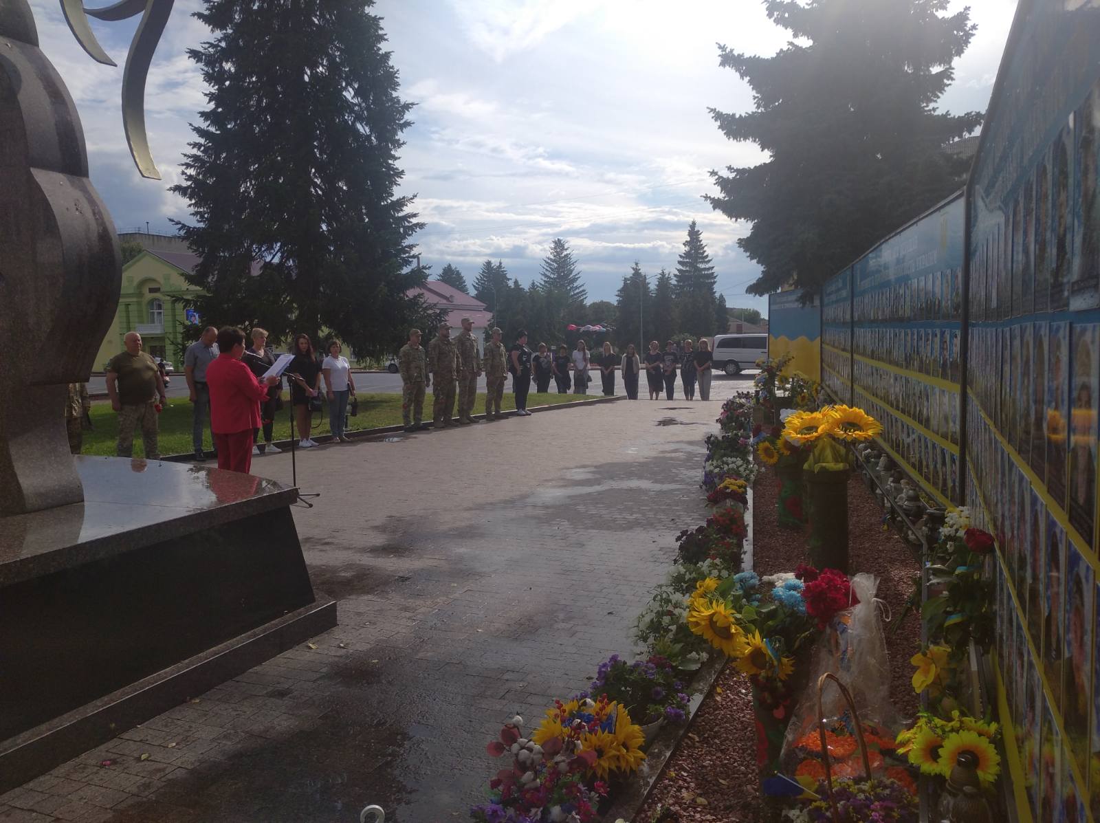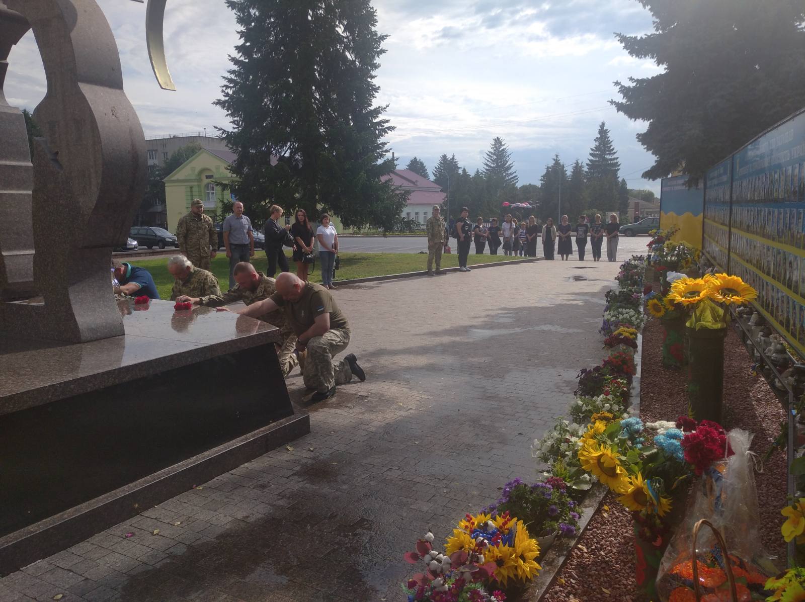До підніжжя пам’ятника поклали живі квіти — символ незгасної пам’яті, вічної скорботи та глибокої вдячності. Це не просто традиція, а священний обов’язок перед кожним, хто не побачив мирного світанку, хто залишився навіки у строю, захищаючи Батьківщину.