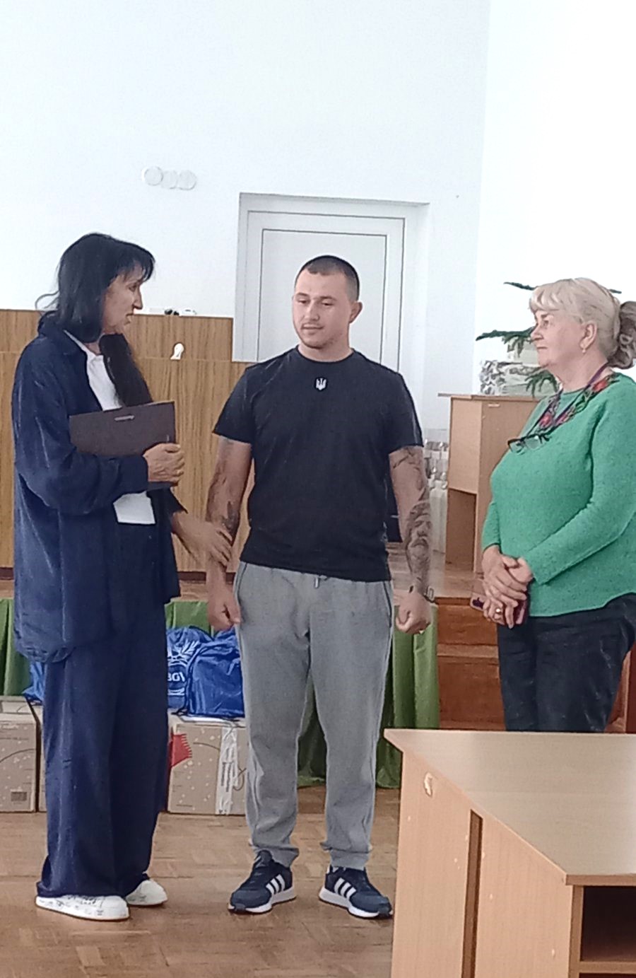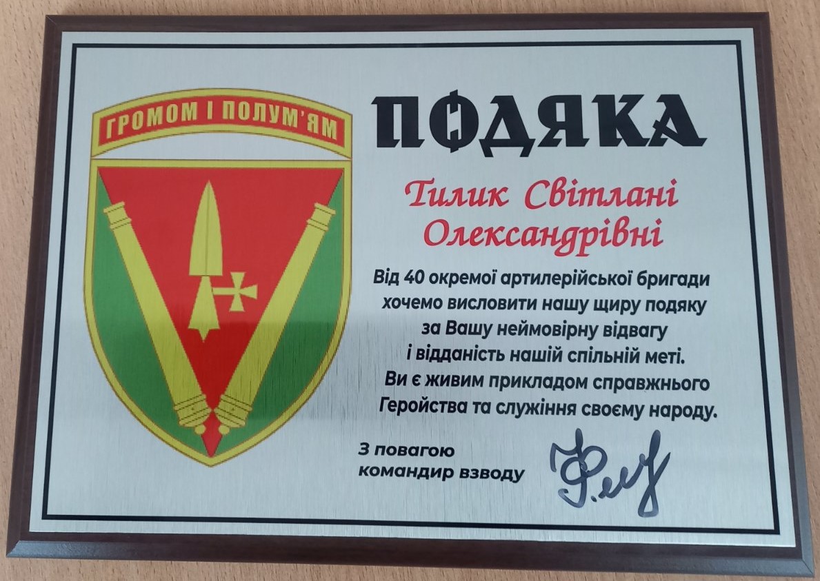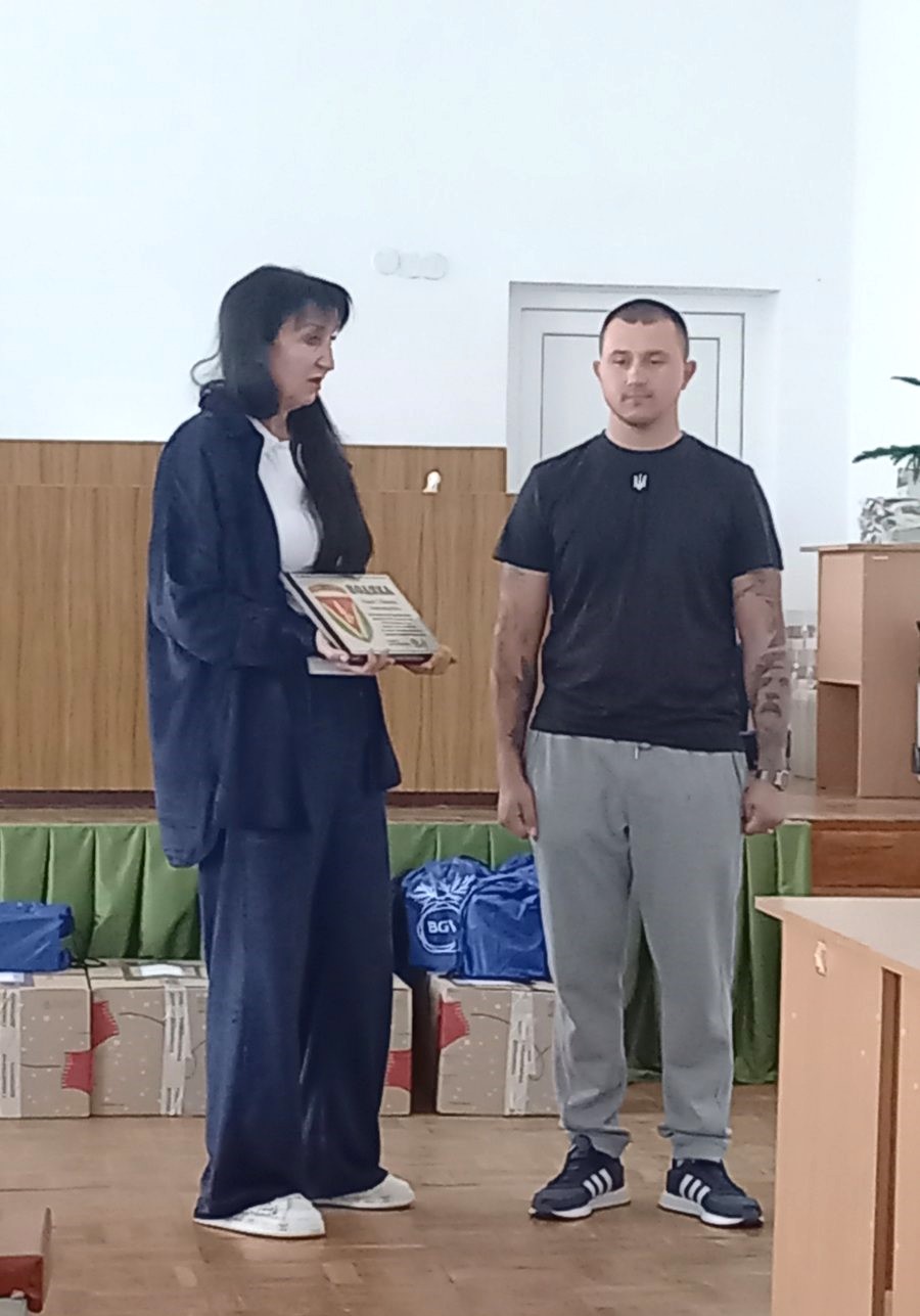 Візит Олександра мав почесну місію: від імені свого підрозділу він вручив подяку Петрівському селищному голові Світлані Олександрівні Тилик за активну підтримку Збройних Сил України, зокрема — за фінансову допомогу в придбанні старлінка.